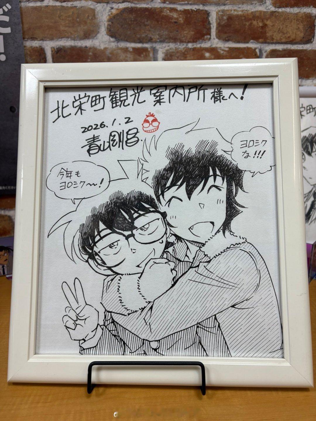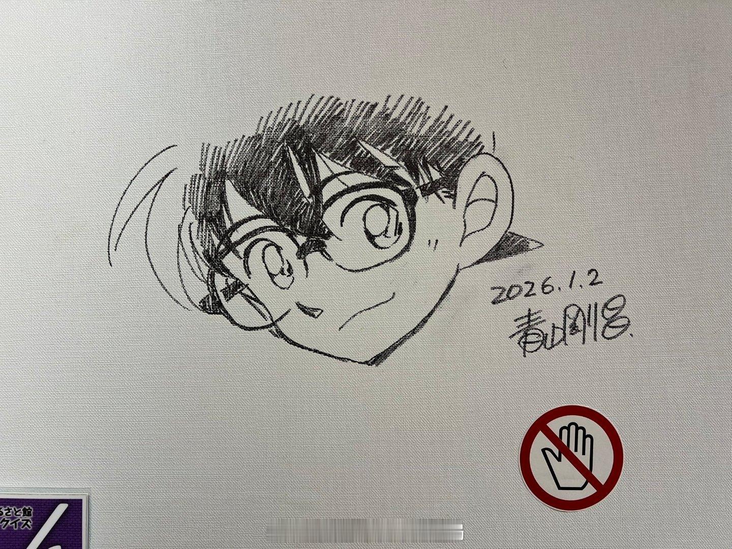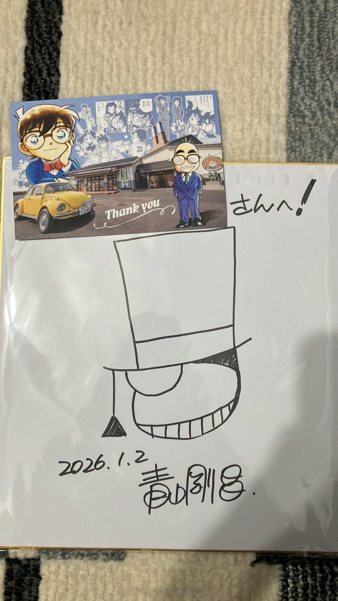 青山刚昌老师2026年最新签绘更新四张!更新①黑羽快斗&中森青子约会名场面 更新②青山刚昌自画头像 更新③江户川柯南头像 更新④怪盗基德头像名侦探柯南