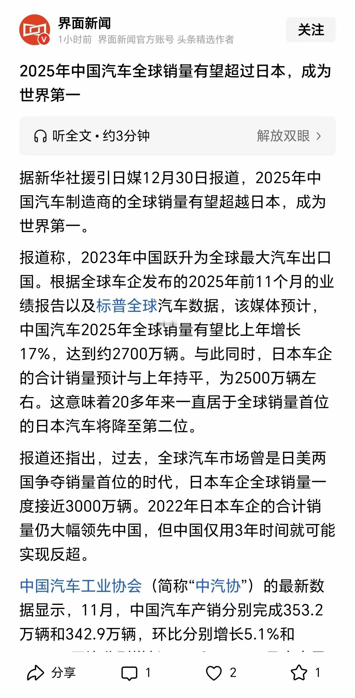 来,从这里亲眼见证世界格局的巨变。从汽车品牌全球销量来看,传统势力依然强大,然而,这只是表象。真实的变化在这里。 欧洲市场11月统计,其他品牌纷纷败退,而中国品通一路高歌猛进。而这还是在欧洲市场对中国品牌设限的情况下。 从全球销量来看,中国已经取代日本成为全球最大的汽车出口国。 再看全球品牌,日韩品牌位居前列,这就妥妥是被中国卷的对象啊。 而这恰好是日韩的支柱产业。 在以上两个背景下产生了这样的结果: 李在明亲率四大财阀200韩国企业领袖前往中国,将谈妥大规模合作。 高市早苗胡言乱语坑死日本企业连续13年经济代表访华今年被强硬拒绝,日本经济雪上加霜。 日韩两家以后的经济走向,已经定调。 点右上角关注我,我们一起去看这个魔幻的世界