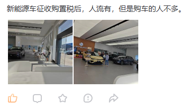 一线销售反馈,新能源车开始收购置税之后,客流有,但都不愿意订车,都选择观望。
