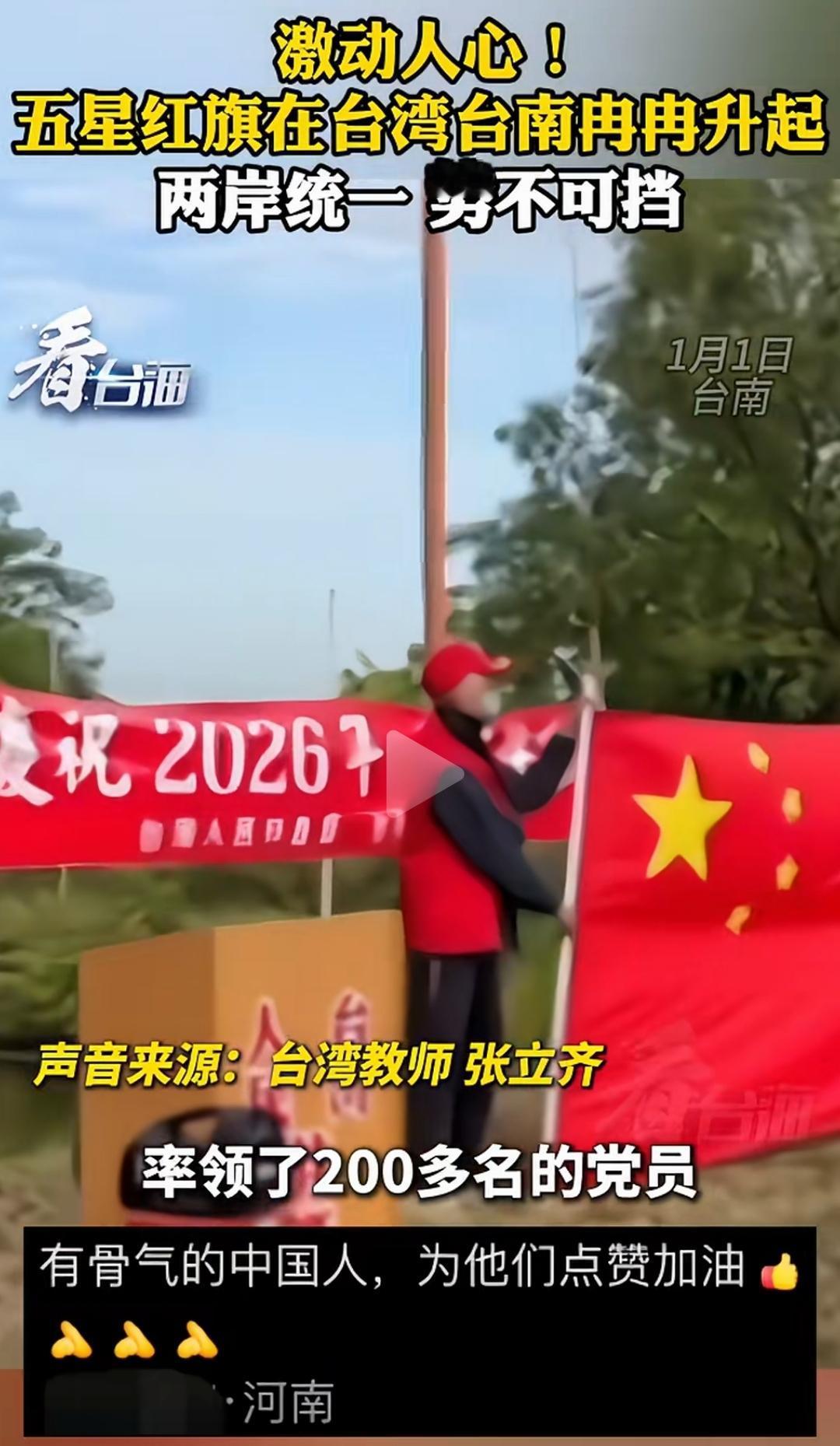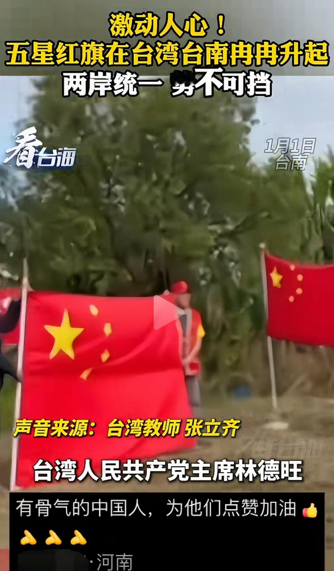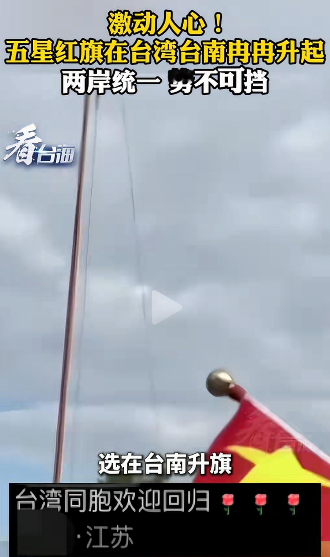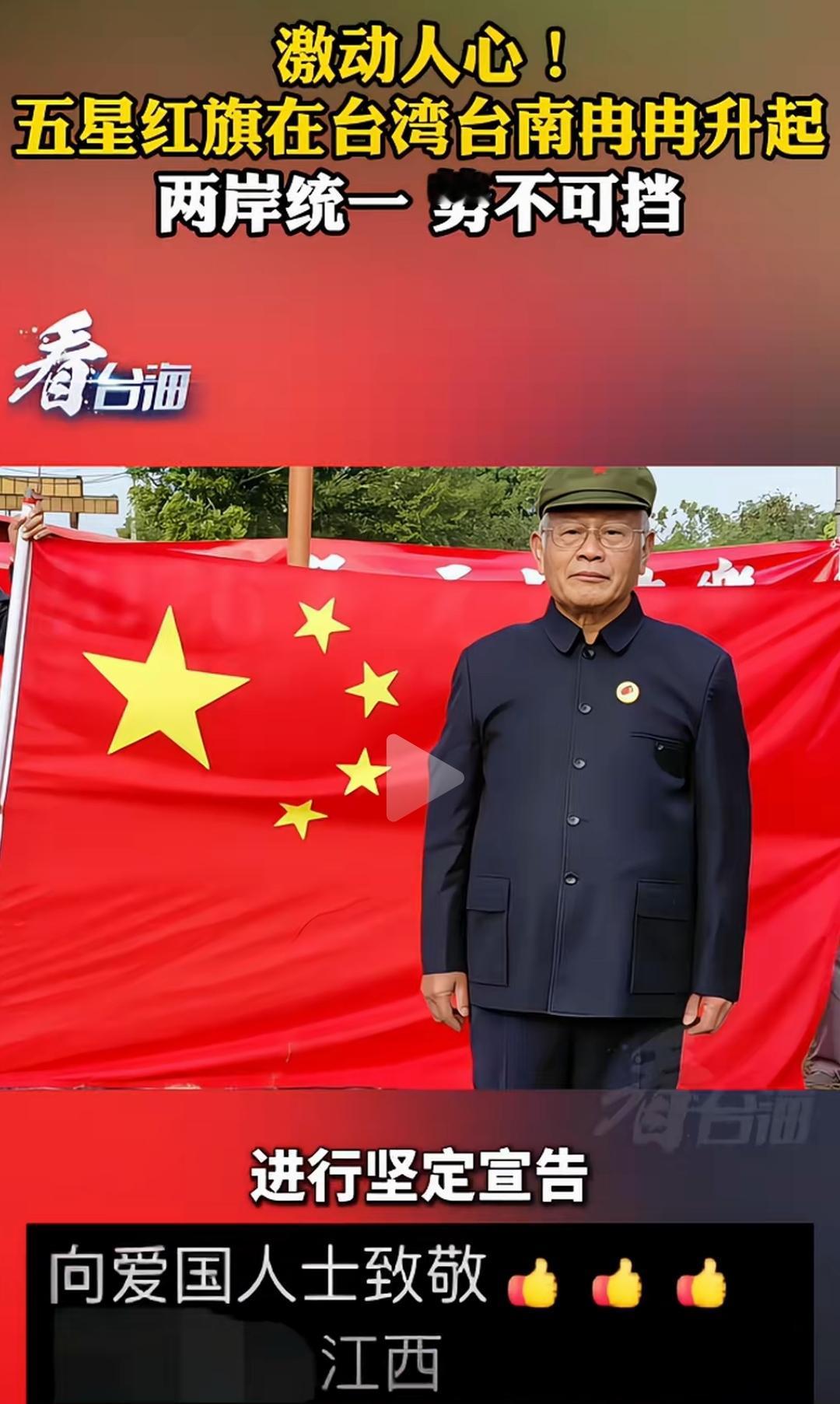 台湾人中还有有血性的!五星红旗在台南冉冉升起 统派蔡正元刚刚被判刑坐牢3年6个月,台湾人民共产党主席林德旺就在台南升起了五星红旗! 一下子就干到了台独的老巢。 虽然只是一个200人的小党,但是星星之火可以燎原! 当越来越多的人被影响,统一的思潮就会在台湾掀起滔天巨浪,终成不可阻挡的洪流。 向不屈的台湾统派同志致以崇高的敬礼。 点右上角关注我,我们一起去看这个魔幻的世界