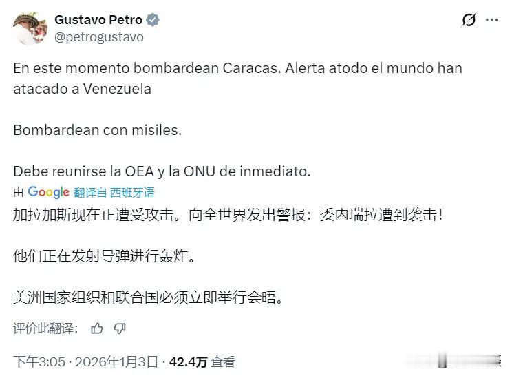 美国对委内瑞拉开打了。当手里有一个锤子的时候,人们总是忍不住想拿它干点什么。特朗普下令空袭委内瑞拉委内瑞拉之前还是做出来努力,避免战争的开始。但是,很多东西不是你想避免就能避免的。 君子无罪怀璧其罪。 当你的存在影响了美国的利益,那你的存在就是一个致命的错误。 现在上三常俄罗斯美国都燃起战火,只有我们还在宁静地生活。 这句话的含金量还在上升。我们不是生活在一个和平的年代,我们只是幸运地生活在一个和平的国家。