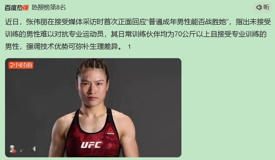 你信不?就现在,屏幕前至少一半老哥觉得自己能跟张伟丽“比划比划”。醒醒吧,这念头纯属送人头。 咱说点实在的:一个没练过的普通爷们,跟张伟丽上擂台,基本就是白给。别杠,杠就是你对——但你大概率会输得很难看。 为啥?真不是性别那点事。张伟丽那句话才是关键:“我每天对练的,都是70公斤以上的专业男选手。”人家日常的强度,是咱们普通人一辈子摸不到的“专业局”。你以为靠体重猛扑就行?结果可能连衣角都碰不到,直接被拖进地面,绞到你拍地板。这就像你用野球场那两下子,去跟NBA看饮水机的单挑——你以为能靠身体硬吃?醒醒,人家基本功就能玩死你。 普通男的自信哪来的?大概是刻在DNA里的“力量幻觉”。但格斗不是掰手腕啊兄弟们!它是技术、距离、时机和脑子的综合游戏。张伟丽说“压住人要靠技术,没技术光使劲儿压不住”,这话太实在了。你空有一身力气,不会发力、不会防摔、地面上一抹黑,在专业人士眼里全是漏洞。一个简单的抱摔,你后脑勺着地的时候可能都是懵的。 这事儿最让我破防的,其实是大家对职业运动的巨大误解。老有人把“能打”跟“爱打架”甚至“家暴”划等号,非得让张伟丽自己说“我打人是要钱的”……挺没劲的。一边好奇“女的能不能打过男的”,一边又用烂梗去衡量一个顶尖运动员,这不矛盾吗?说白了,一部分是对搏击有多残酷完全没概念,另一部分,多少有点对强大女性的不适应。 再说了,普通人想象中“能赢”的场景,多半是街头瞎抡王八拳,或者靠体重赖着不起。但在有规则的对抗里,专业训练形成的肌肉记忆和战斗智商,就是碾压级的。张伟丽输给罗斯、输给舍甫琴科,那是世界顶级高手间的毫厘之争,跟咱普通人隔着太平洋呢。拿她的失利来证明“男的都行”,属于典型的看热闹不嫌事大,逻辑根本不通。 所以咱看比赛,看点纯粹的:看的是技术、斗志、人类体能和意志的极限。别老琢磨那些虚空对比的杠精问题。张伟丽让很多女孩觉得“我也可以变强”,这意义,比争论“能不能打过某个普通男的”,大了去了。 都散了吧。该练练,该看看。尊重专业,欣赏极致,这才是体育该有的样子。张伟丽首次回应能否被普通男性打过为什么张伟丽值得被尊敬从张伟丽身上能学到什么?