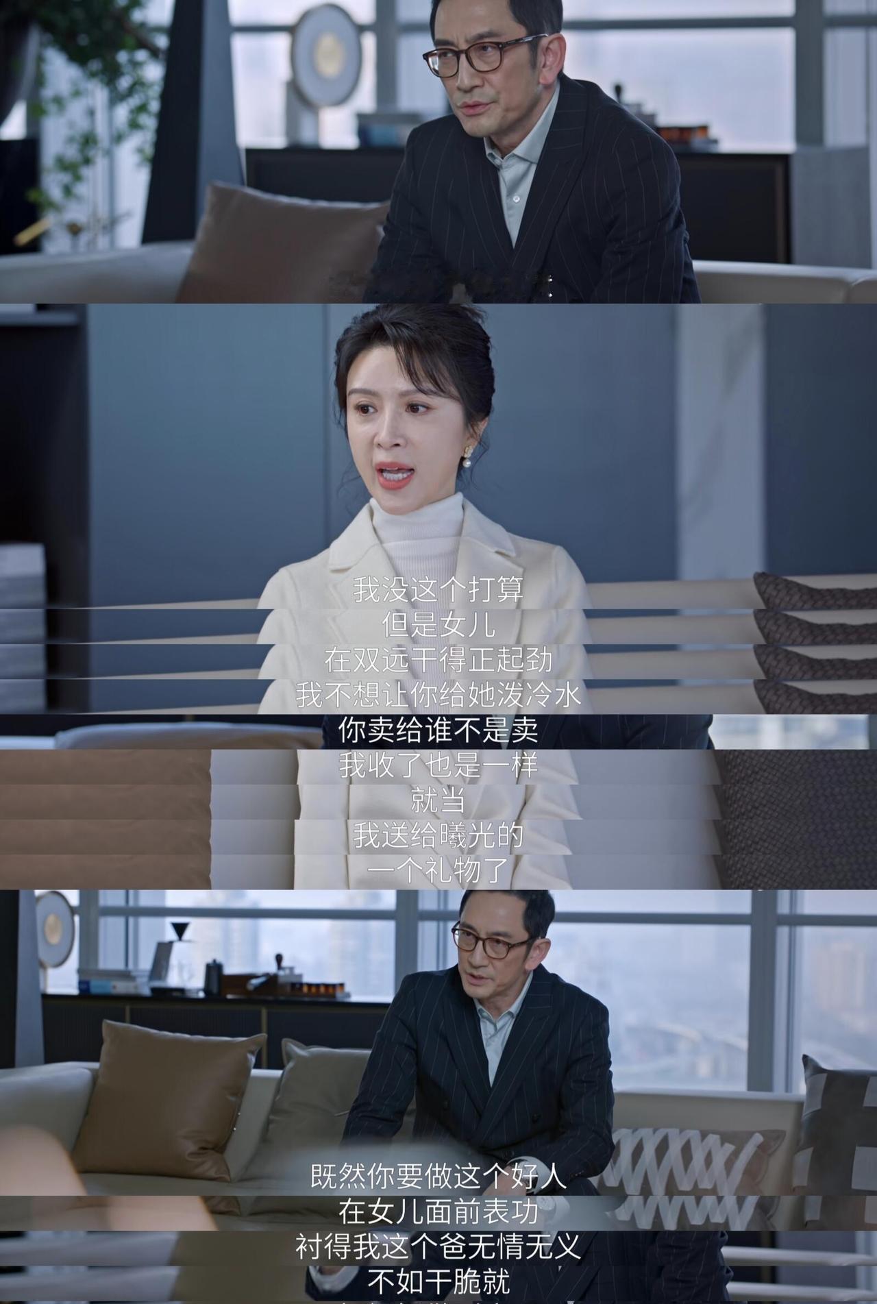 最危险的算计,往往披着父爱的外衣。 聂曦光的父亲,给你上了一堂经典的“精致利己主义”实操课。 他推动光伏转型,不是为了产业,是为了置换你的股份。 他联系前妻为你铺路,不是为了你的前途,是为了扫清自己的障碍。 他的每一个温情电话,背面都贴好了价码。 你看到的父爱,是他成本最低的杠杆。 编剧把原著中的商人特质磨成了匕首。 他嘴上说着“为你好”,手上操作着股权置换。 他把商业风险转嫁给家人,把情感债务算进报表里。 新能源的浪潮,不过是他新一轮的资本棋盘。 而真正的守护,沉默且具体。 母亲用“送你一份礼物”的理由,接手了那个光伏产业。 她没解释战略布局,她只说“这是给你的”。 她用一份不动声色的礼物,堵死了所有算计的路径。 爱不是筹码,爱是护城河。 所以宋威龙要提前研究几百个商业案例。 因为面对这样的父亲,你的感动和眼泪全是破绽。 你需要用比他更硬的逻辑,守护比你更软的心肠。 别在他精密的算计里,寻找父爱的证据。 你要在沉默的取舍中,看清爱的真相。