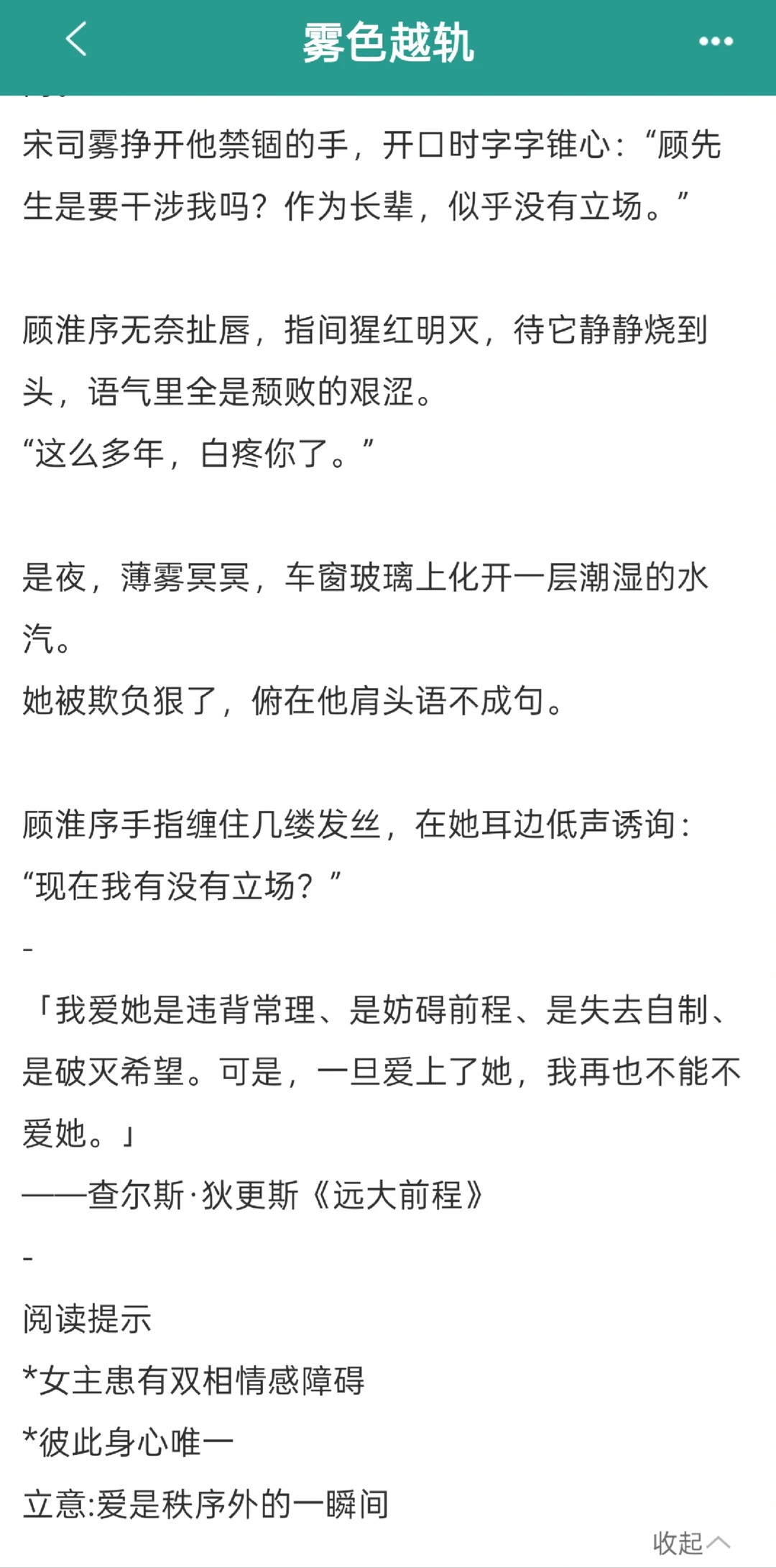 叛逆少女X名义上的叔叔,年龄差10岁。 高中时期女主寄人篱下,男主喜欢她却不肯承认,后来女主不告而别一走四年。开篇是两人再次重逢,第一次见面都假装没看到对方。但其实男主他超爱!!因为女主有胃病,车上一直备着女主的药,巴巴儿地跑去找女主。两人之间的拉扯超带感,那个恨海情天的味儿太足了!!!吃养成系老房子着火的必冲!!