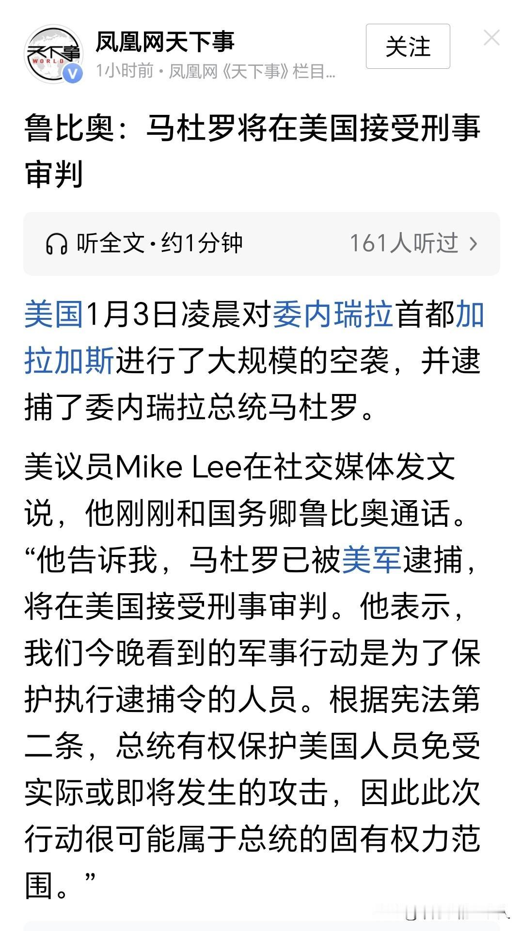 这下该明白为何所有国家都惧怕美国了吧。 美国并非只会耍嘴皮子,而是真敢付诸行动。且不论这种行径是否正确、是否合乎国际法,单说其是否言出必行。 马杜罗嘴硬,却硬不过美国的拳头。 这个世界终究是谁实力强大谁说了算,能动手解决就绝不空谈,这才是威慑。