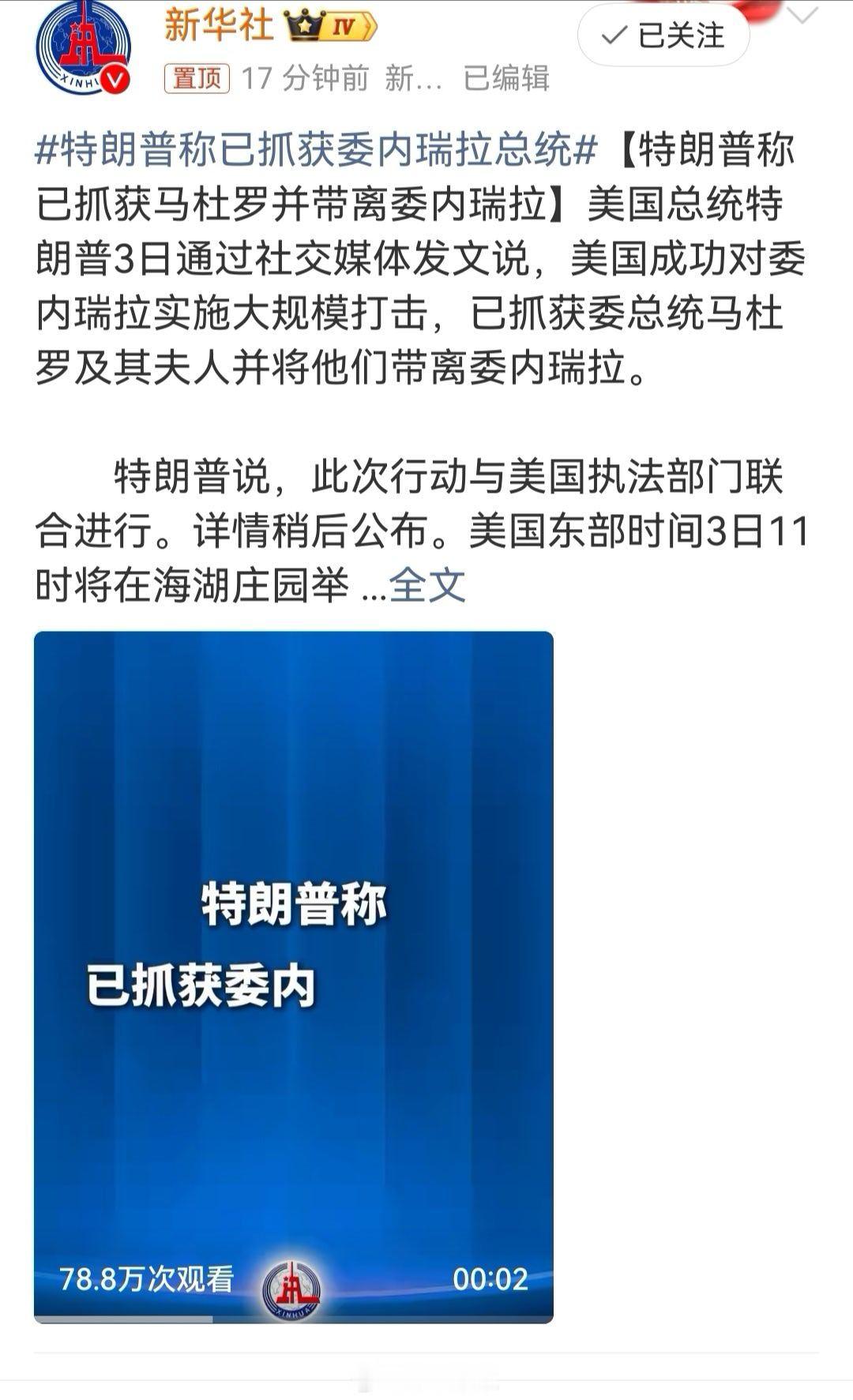 特朗普称已抓获委内瑞拉总统 这事儿有点太夸张了吧,老美可以这样直接抓另一个国家的总统吗?太离谱了吧还有王法吗… 佛山