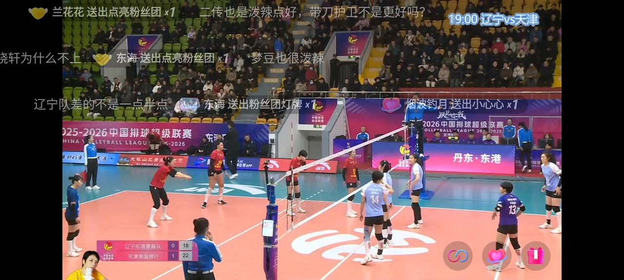 天津女排客场3比1战胜辽宁女排,送给对手六连败,三局的比分是25比21,25比19,13比25,25比18。尽管辽宁女排赛前更换了主教练李海运,又是主场作战,但整体实力略逊一筹,天津女排的小将敢打敢拼,前两局很快大比分2比0领先,第三局天津女排遇到一些麻烦,比分一直落后,不能组织有效进攻,失误太多,很快以13比25大比分输掉一局,第四局天津女排让孟豆出任二传,双方比分交替上升,战至中局领先四分,最终天津女排以25比18赢得第四局,从而大比分3比1获胜。