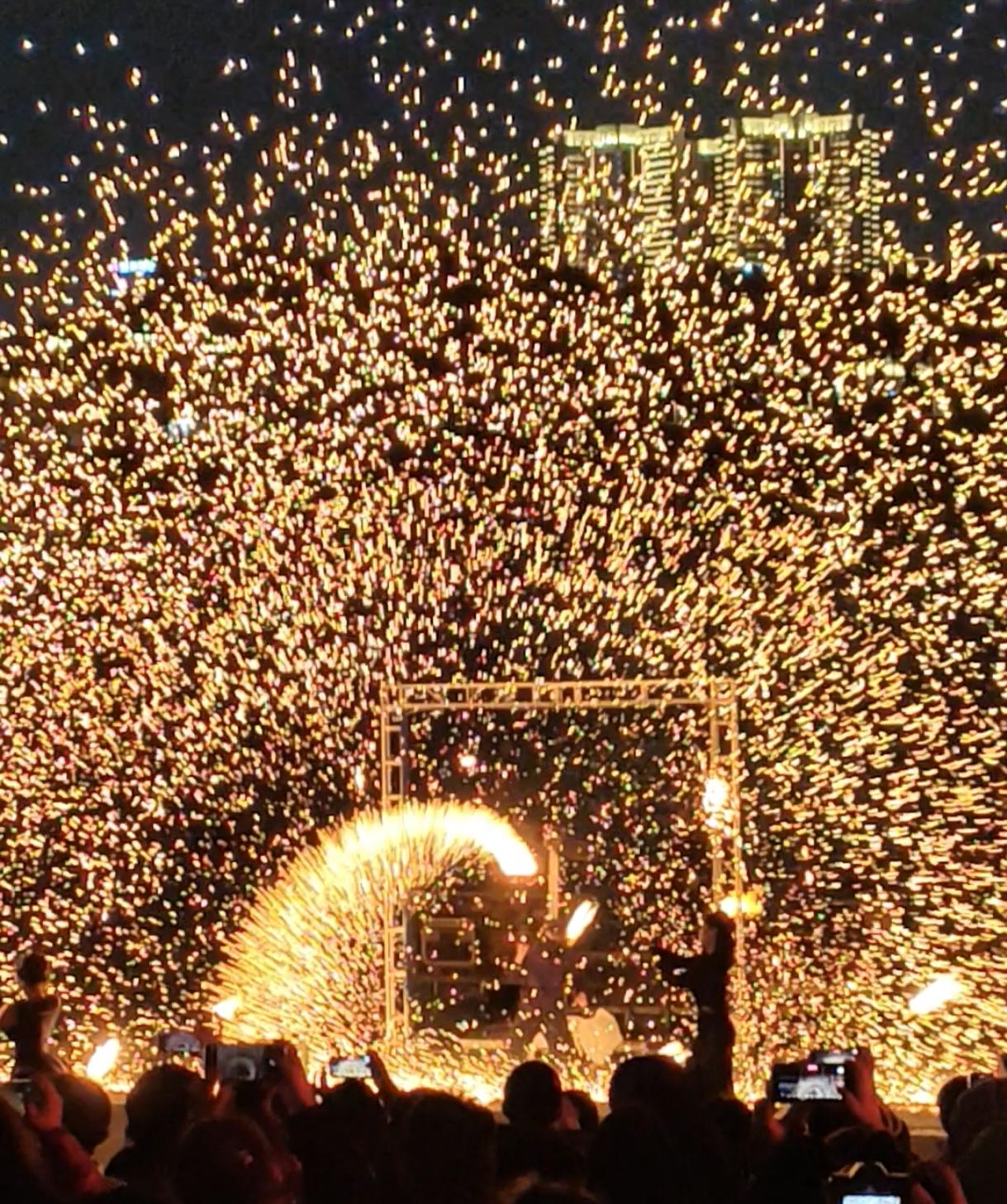 广州有灯光秀,广西南宁在江边有火花秀吸引了很多外地人过来观看,每人需要付钱45元,如果你没看过的,我拍的照片分享一下吧。