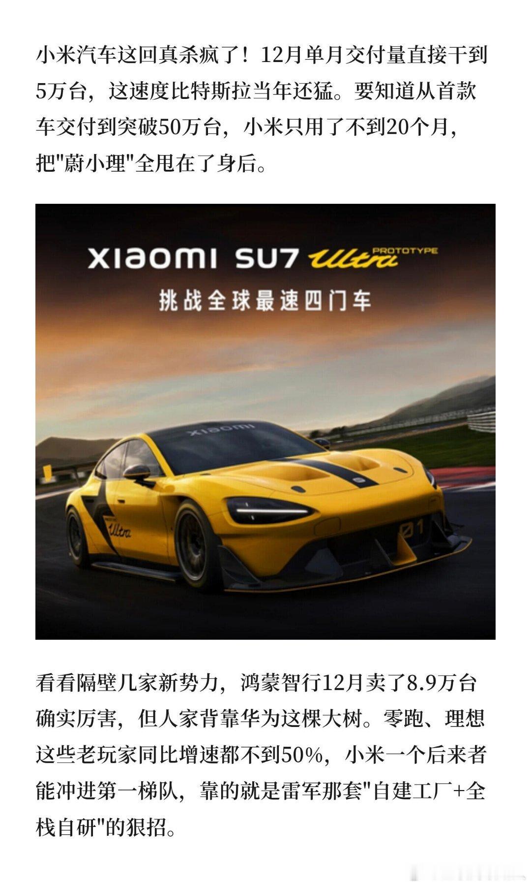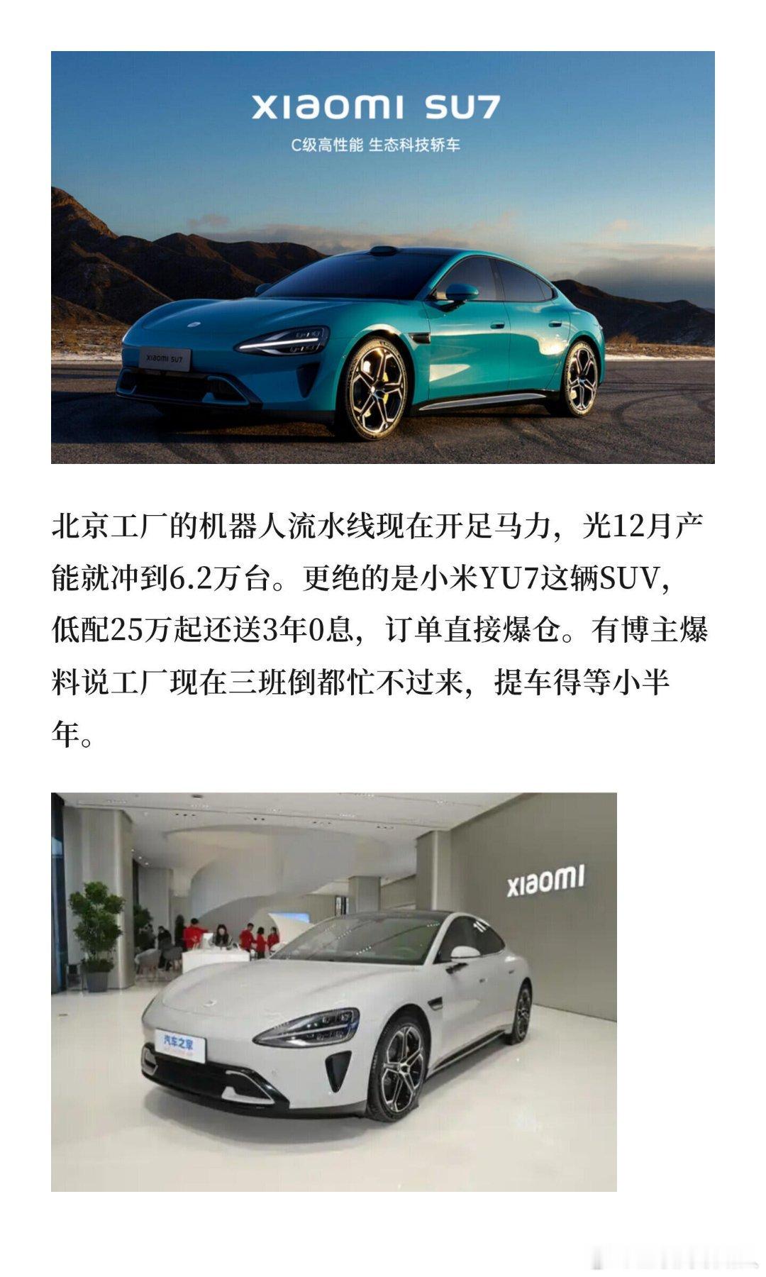 小米汽车25年交付超过41万 真没想到小米汽车交车这么快!从0到41万多台,才用了一年多时间,这速度在新能源领域里真的少见。今年车市这么卷,还能交出这么漂亮的成绩,而且车子均价不低,太不容易了。身边好多年轻精英和科技爱好者都提了车,SU7一直卖得好,YU7上市就火,轿车SUV都站住脚了。这背后肯定是产能和供应链跟上了,小米这次是真把制造功底亮出来了。