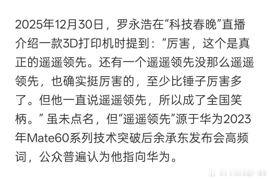 老罗,你桀骜不驯的样子相对更值得佩服那么一丁点,自己迫于找台阶下,也别甩锅给广大网友,什么是真正不真正,什么玩笑叫“全国笑柄”?说遥遥领先这个梗没有问题,但是你为什么非得加上一个这个不是真正的遥遥领先呢?