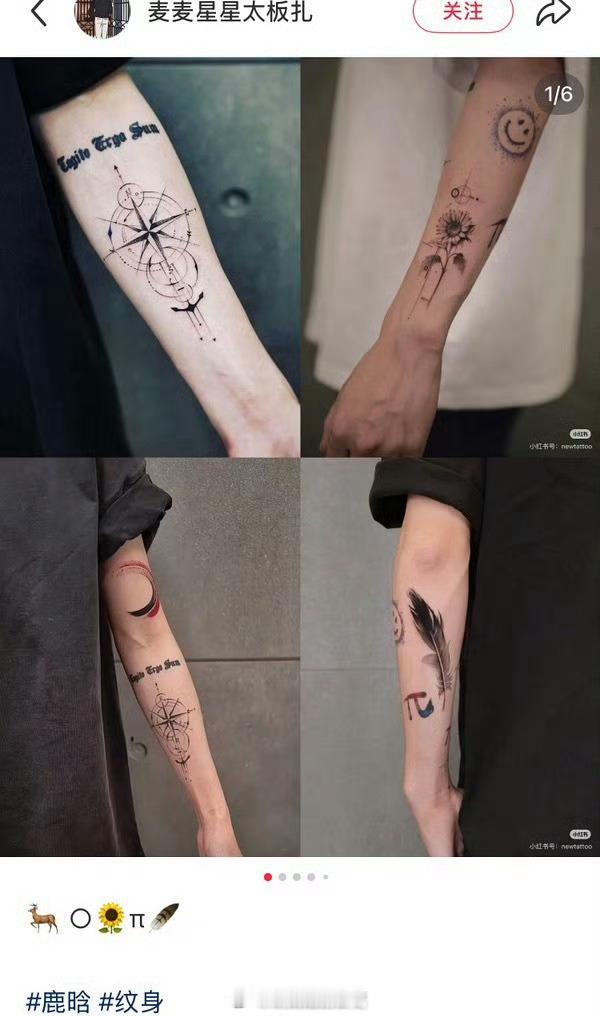 司晓迪晒出的几张图:图1的同款卫衣,鹿晗穿过(图2);图3的卫衣完整图版,关晓彤穿过(还在恋爱的时候,图4)图5的纹身图案,也是鹿晗的同款图案(图6)
