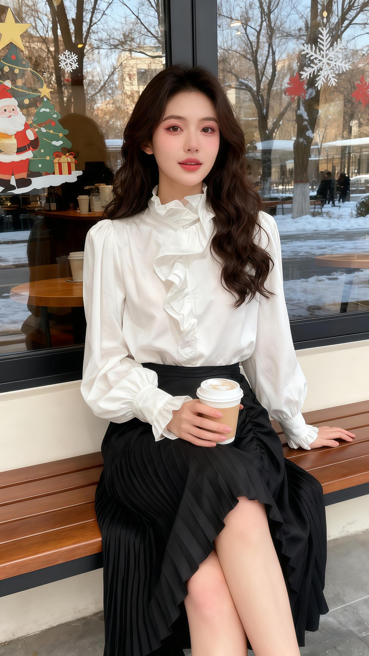 冬日暖阳下,优雅淑女坐长椅,暖意融融。
