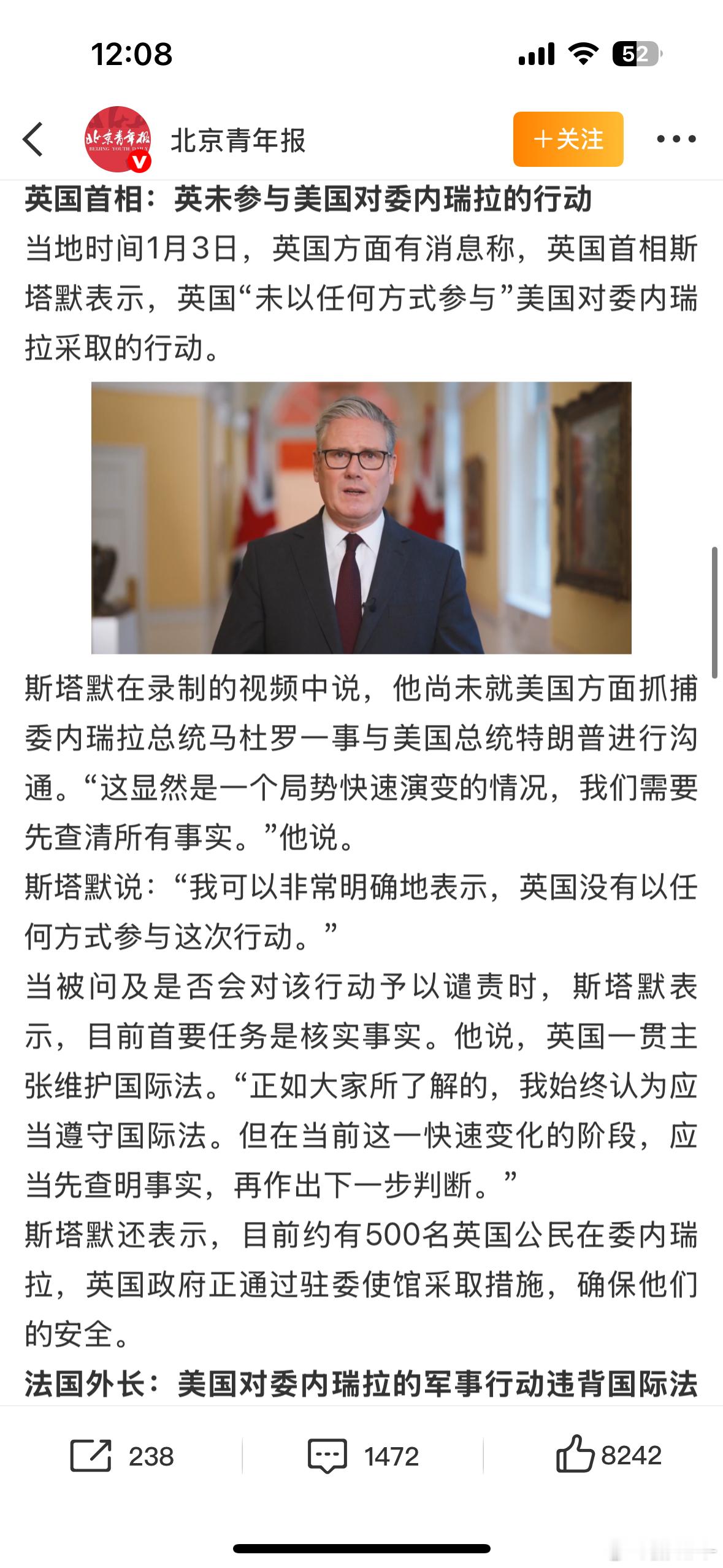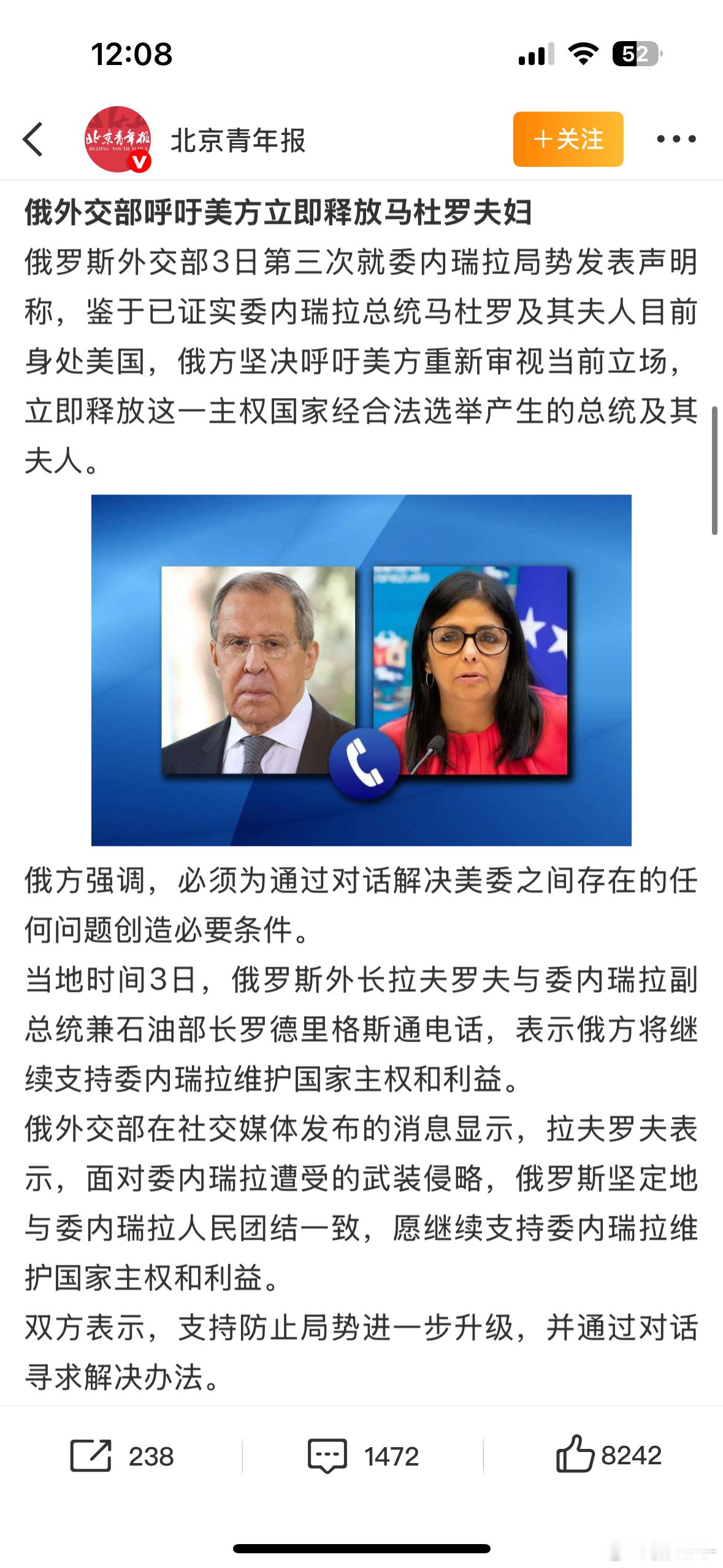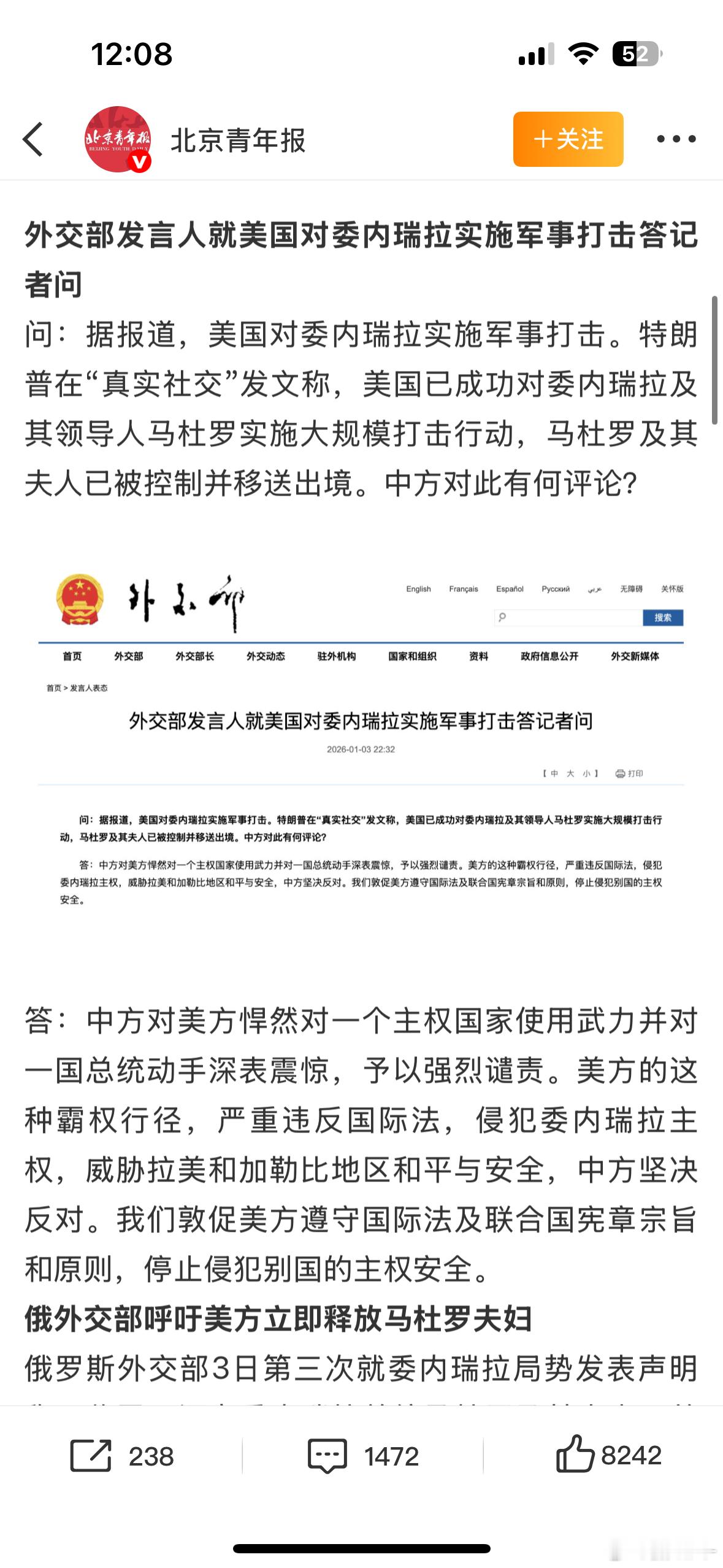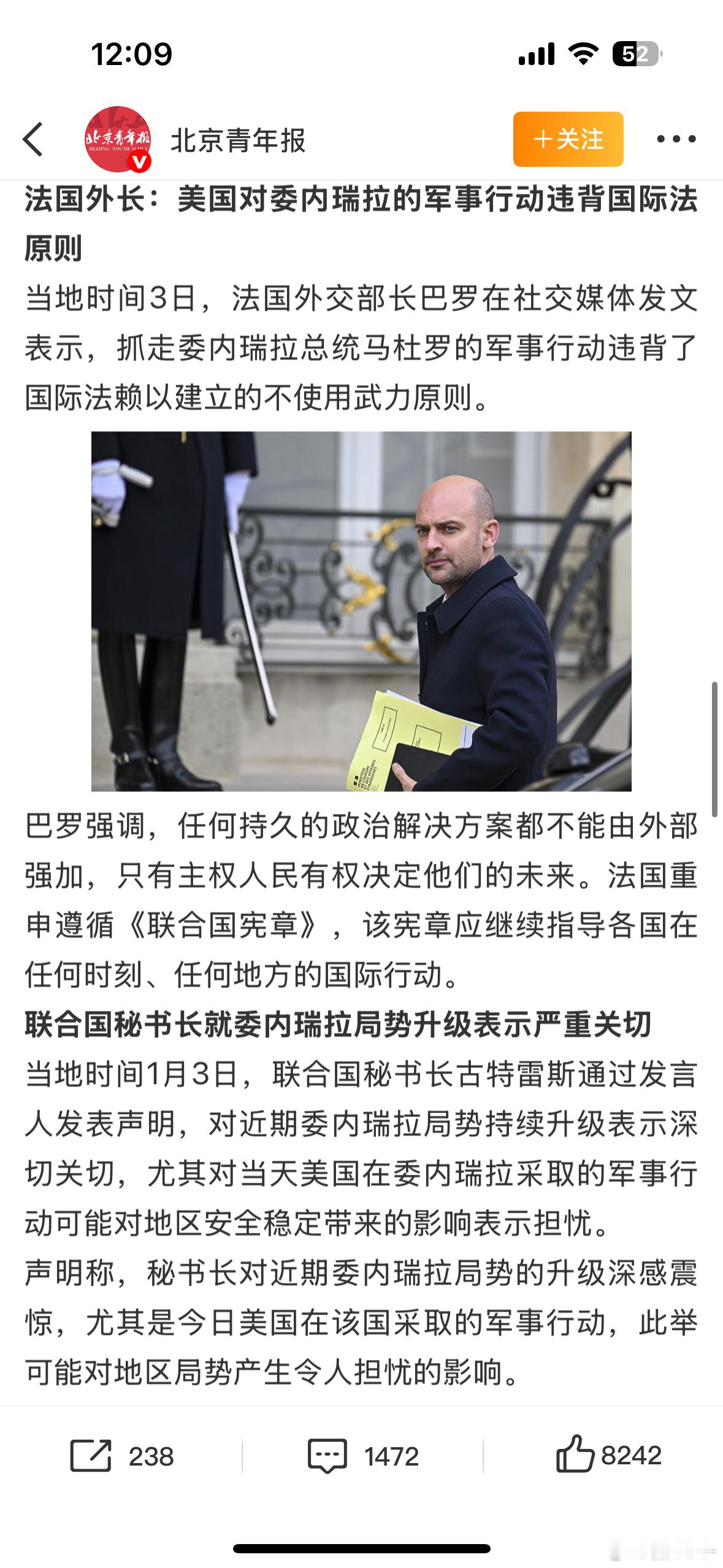 美国强掳马杜罗中俄英法表态懂王:没错就是我,我就是这个世界的王霸!但是看到这个词条还是蛮震惊的不敢相信这是现在能发生的事情,啥也没说给人总统绑了,懂王还是懂王啊