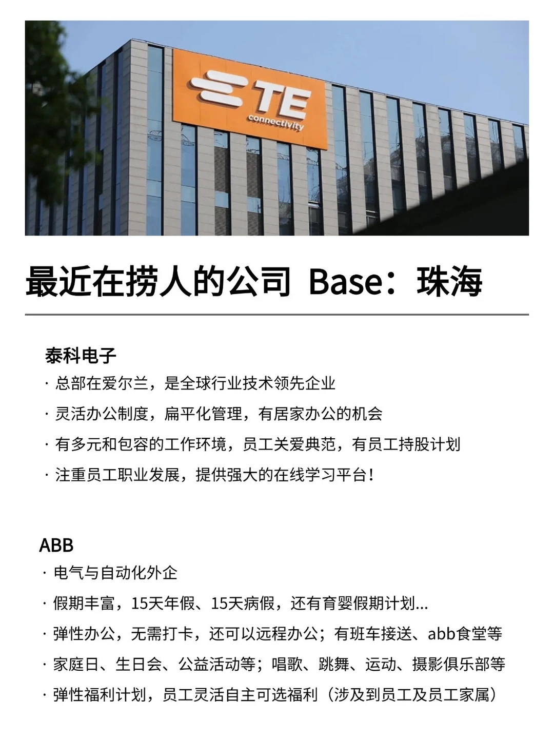 珠海发展真的越来越好,有不少小而美、冷门宝藏的公司,机会是真的很多的! 特别是有不少小众冷门的外企,真心建议大家可以去试试 · 为什么还是值得去外企? 氛围好,对女性友好,年假长,基本上都是10天起步 很多还都支持居家办公、福利完善,是真的能实现WLB 待遇也还不错,想在年前找工作的真的可以考虑考虑~ · 坚持日更,帮大家在找工作路上顺利拿 offer! ·