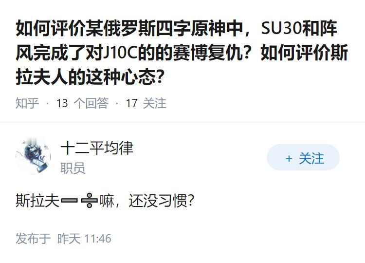如何评价某俄罗斯四字原神中,SU30和阵风完成了对J10C的的赛博复仇?如何评价斯拉夫人的这种心态?