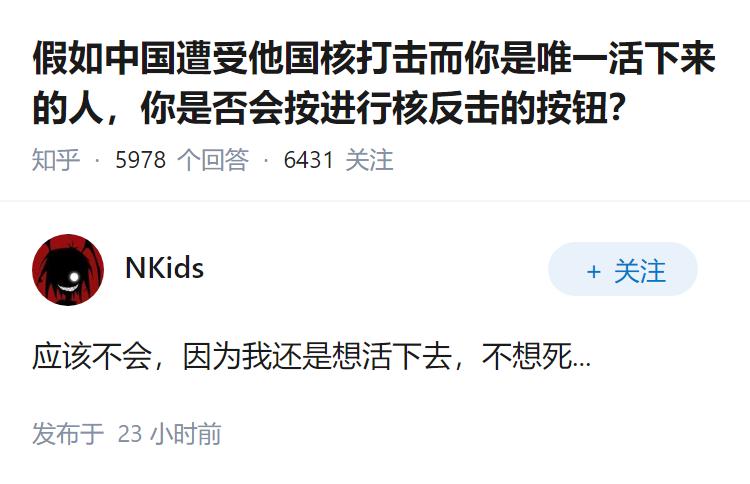 假如中国遭受他国核打击而你是唯一活下来的人,你是否会按进行核反击的按钮?