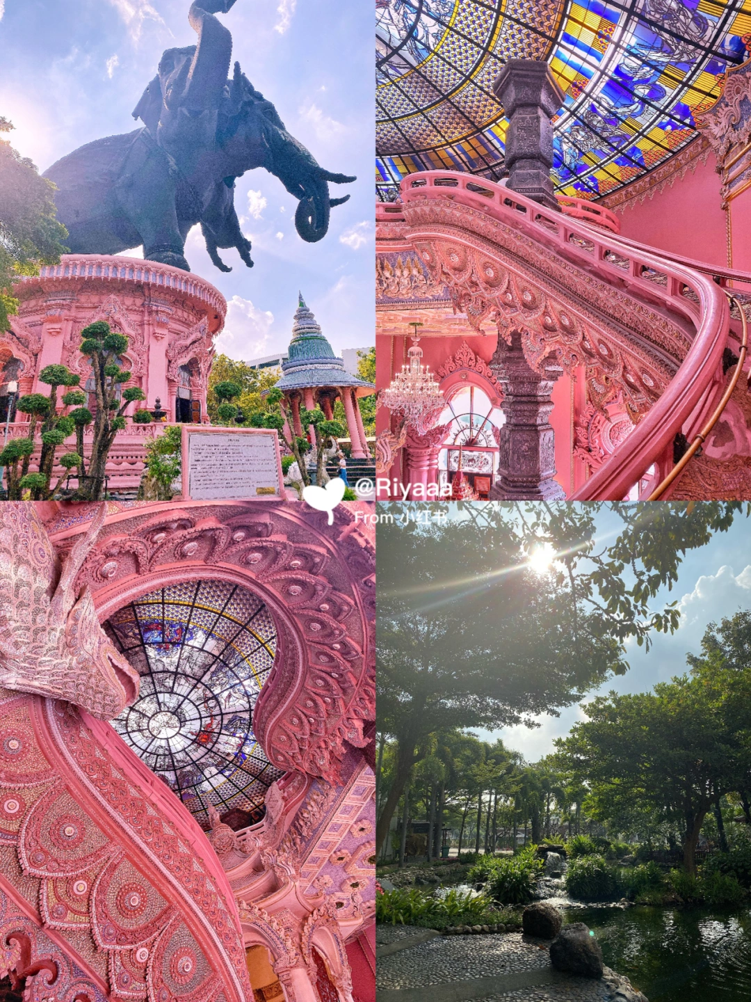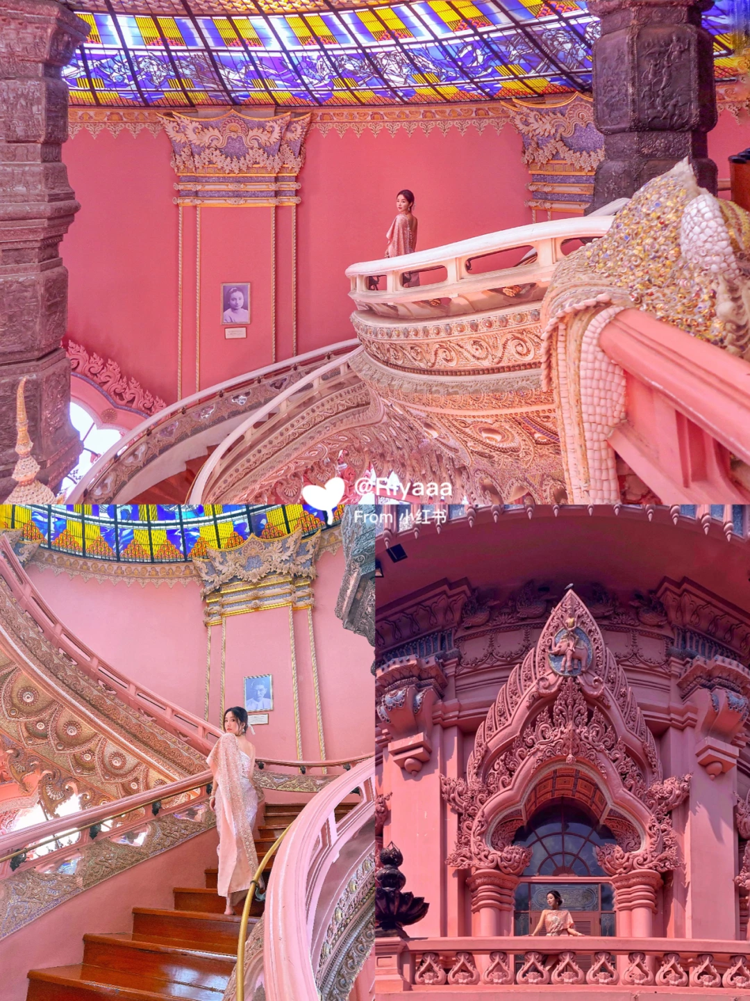 从一进门的庭院设计,到宏伟的三头象神雕塑,再到精雕细琢的粉色艺术殿堂,每个细节都堪称一绝。任何角度都是大片既视感!博物馆共三层,每层代表不同的世界,上层:无限宇宙,中层:人类世界,底层:地狱