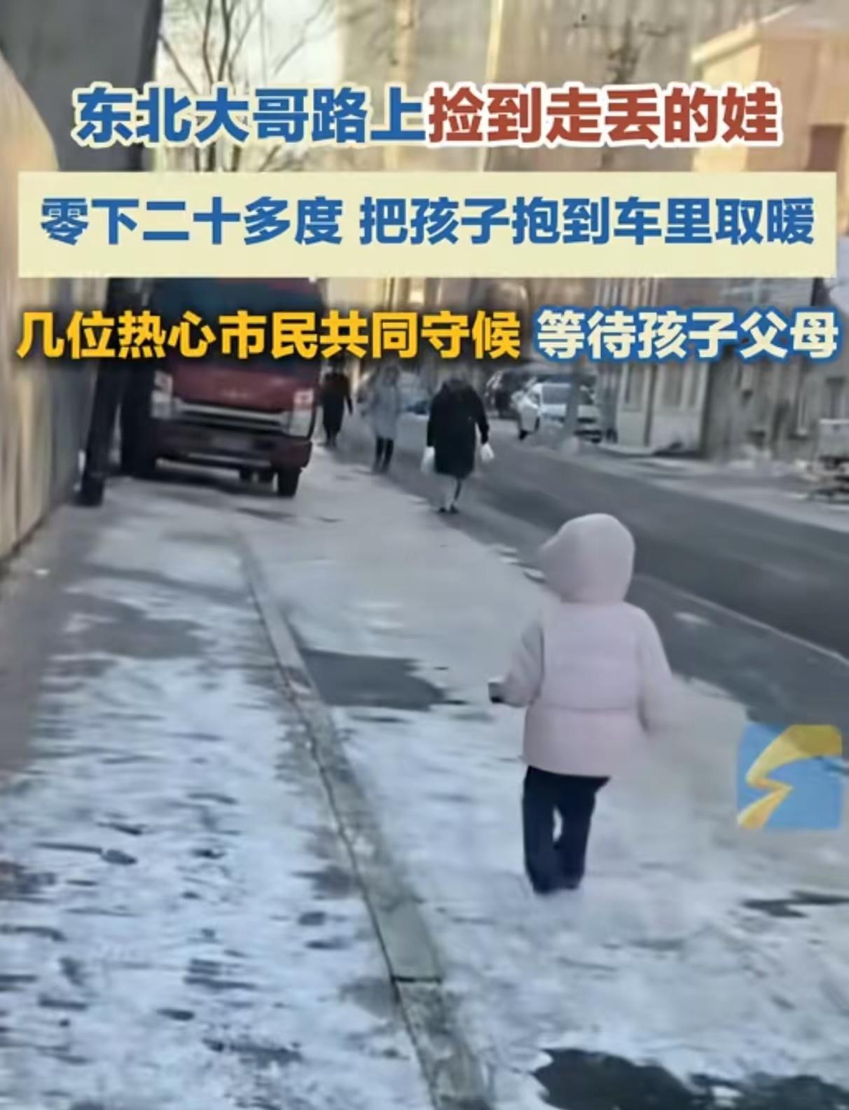 太暖心了!哈尔滨,零下20度,2岁女童独自一个人在街上,热心大哥看见一个小朋友在路上,怀疑她走丢了,上前帮忙,可她太小根本说不清,男子正要带着娃找家长时,两位路过的大姨立马围了上来,警惕的盯着他的一举一动,网友:东北果然丢不了孩子,热心肠是刻在骨子里的。 1月2日,黑龙江哈尔滨,气温低至零下20度。街头,一个穿着粉色棉服的2岁小女孩独自走着,没戴围巾,没戴手套,也没戴口罩。 热心大哥上班路上看到这一幕,有点怀疑这娃是不是走丢了,他走上前问孩子:“你要上哪去啊?”孩子只奶声奶气地喊“妈妈”。 大哥看孩子手里拿着手机,但是手机里面没有插卡,联系不上女孩的家长,在这样没有保暖措施的环境下,心想怕孩子冻着把孩子抱到自己车上取暖,期间还有一辆出租车说要不要孩子上车保暖,被拒绝了。 忍不住感叹好心人真的好多,还有看了视频我发现热心大哥自己没有上车,我猜想是怕那两个热心大姨误会自己不是好人,这样子更稳妥点,孩子的保暖也有落实。 期间也有其他的热心市民一直跟在他身后,就怕孩子有危险,最让我哭笑不得的是孩子妈妈后来来了,大姨和热心肠的路人们也不放心,后来确认再三后才把孩子给了她的妈妈。 后来我才知道,孩子一个人在外面的原因是因为孩子父母去对面银行办事,这才让孩子不小心走了出来。 有网友说:大姨靠近你这几步分别包含了对你的审视、判断孩子是否安全、冻豆腐呼你一脸的前摇。 也有网友说:我以为你们三个互相提防已经是极限了,看评论区才知道还有俩藏电线杆后面盯着你们的[泪奔]主打一个都热心但都不信任对方 还有网友说:他怀疑你,你怀疑她!她怀疑他!亲妈来了也得等1 1 零 我相信大哥被路人怀疑时多少会有点委屈,但他更在意的是孩子的安全,他有错吗?他没错,他只是做了东北人都会做的热心事,而这份热心,在这寒冷的冬日里,温暖了孩子,也温暖了所有人。 另外也给大家提个醒,遇到走失的儿童不要慌,记住这三步:1,别带孩子远离原地 2,第一时间报警说清孩子特征和位置 3,喊上附近人一起照看,既护孩子安全,也能避免误会。 你们认同吗?