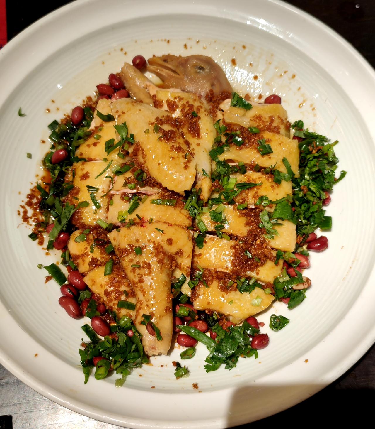 昨天下午从广西回广州了,我发现广西南宁桂小厨做白切鸡的配料是和广州不同的,一般广州人做白切鸡的配料是姜茸,葱花和酱油,但有一个小碟子装着,要不要蘸料是你的事,我就不要蘸料直接吃鸡肉,在广西南宁桂小厨吃白切鸡,这里是把所有材料都淋在鸡肉上面了,有花生米,蒜蓉,酱油,还有其他配料,看看图一是广州的白切鸡,图二是广西南宁桂小厨的白切鸡,味道是差不多的,只是配料不一样。不知道广西人在家里做白切鸡是配什么蘸料的呢?