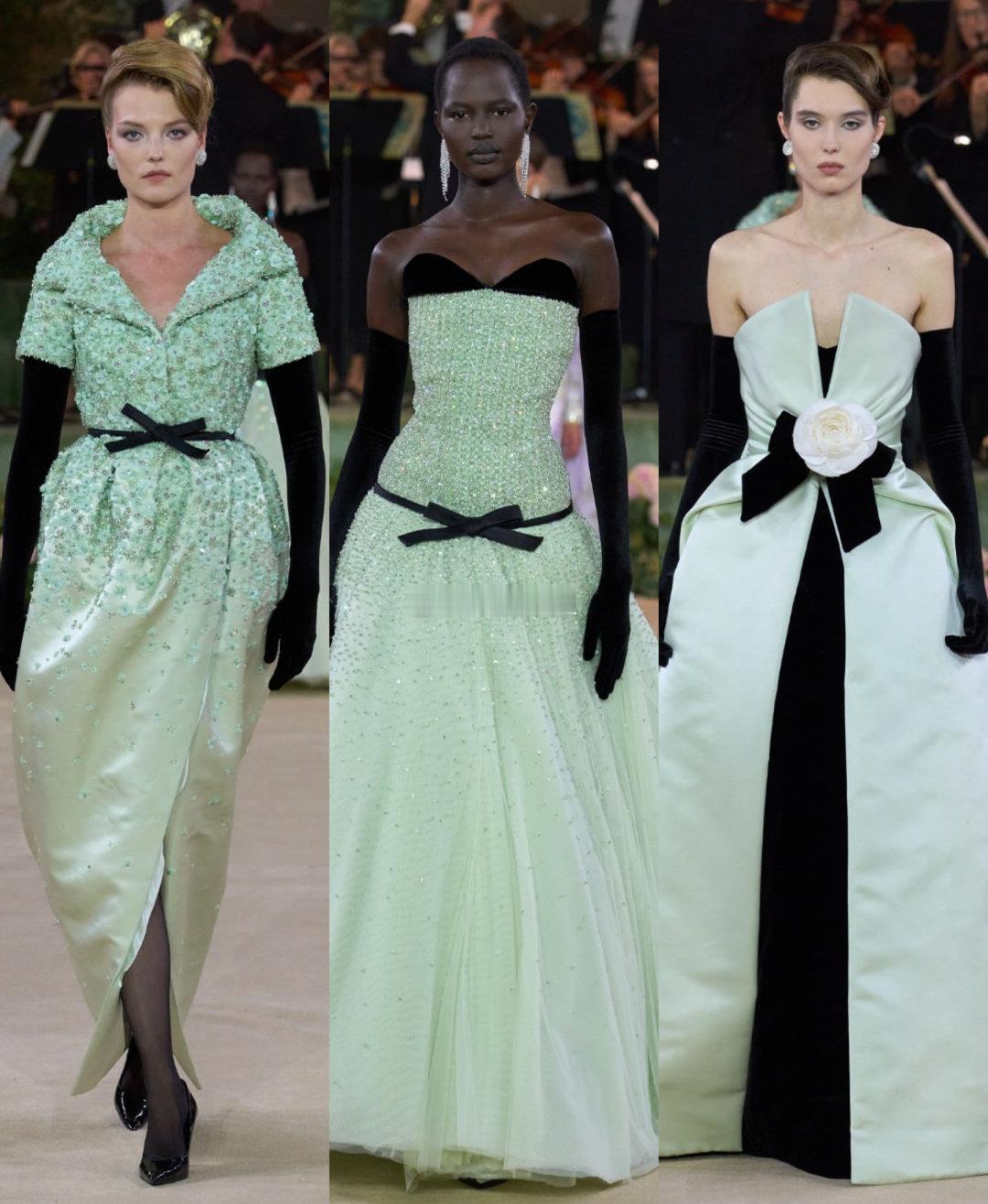 风格大赏 |Quinn 婚纱高定Quinn 的这些婚纱像是梦想的具象化。复古与现代的碰撞,延续了50年代高级定制的廓形,紧身胸衣搭配钟形裙摆,但Quinn用色彩赋予了它们新的灵魂——从炽热的火焰红到清新的开心果绿,每一针每一线都在闪耀生命力。就在大家都在追求解构和极简时,Quinn是唯一还在坚持这种毫不掩饰的甜美与女性化的人。他的设计不古板、不怀旧,而是俏皮、梦幻且极度修饰身形。秀场设在古董音乐厅,头顶是璀璨的水晶吊灯,四周是高耸的绣球花,他不需要每季都颠覆自我,这种“大裙摆+大胆装饰+极致浪漫”的公式,本身就是魔法。