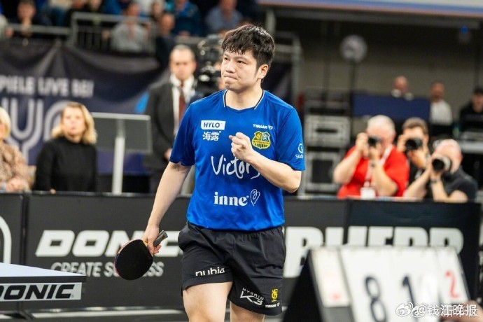 【#樊振东留洋生涯首冠#】#樊振东回应是否续约萨尔##樊振东希望还能再打一次德国杯# 乒乓球德国杯决赛萨尔布吕肯vs富尔达马伯策尔,第四盘3-0战胜菲卢斯,决赛再次独得两分,帮助萨尔布吕肯总比分3-1战胜对手,夺得德国杯冠军,樊振东收获留洋生涯首冠。(新华社 咪咕体育)