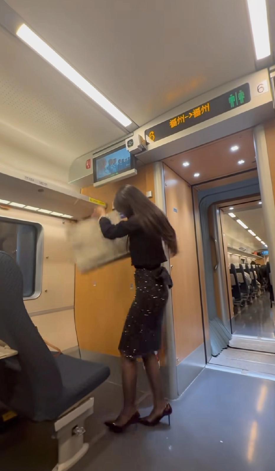 在高铁上,一个美女要下车了,放在高处行李架上的物品,也是自己一个女人勉强去够着拿下的,同行车上的人,难道就没有一个人懂得怜香惜玉么?好歹也助人为乐一下呀…… 这个社会不知道是不是都变了味一样了……