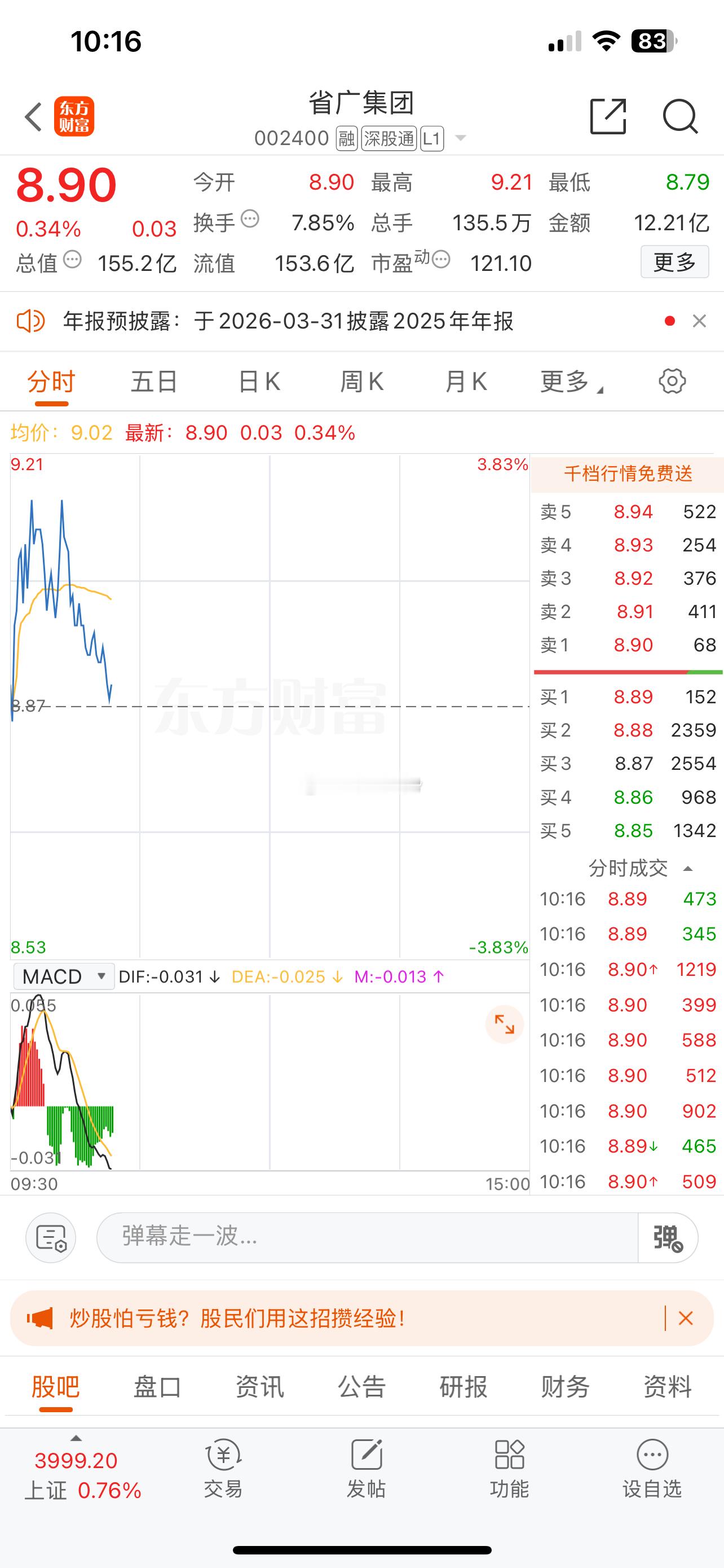 主板票低吸一笔:$省广集团 sz002400$