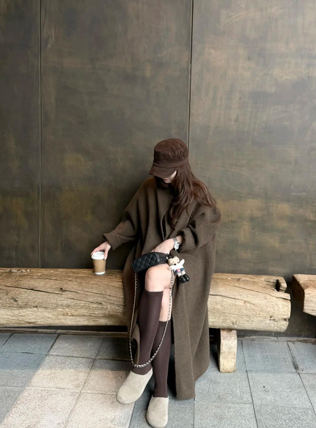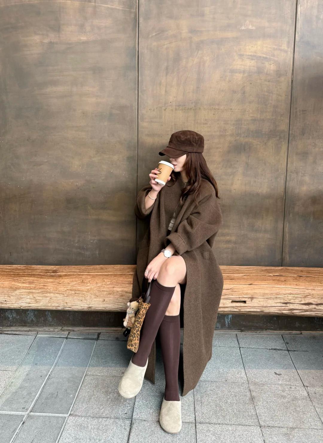又是被大衣美到失语的季节~深咖色长款大衣一上身,氛围感直接拿捏👏 内搭褐色打底衫,温柔又显气质,和深咖色大衣组成同色系渐变,高级感溢出屏幕。下半身搭配同色系包臀短裙,巧妙勾勒出身材曲线,女人味十足。再配上同色长筒袜,整体造型和谐又统一,仿佛自带滤镜。 想要打造大长腿效果的姐妹,还可以把短裙换成打底裤,再搭上过膝长靴,保暖又显腿长,轻松拥有冬季大长腿穿搭。 这一套真的谁穿谁美,快码住!💃图片来源于博主:Camellia山茶