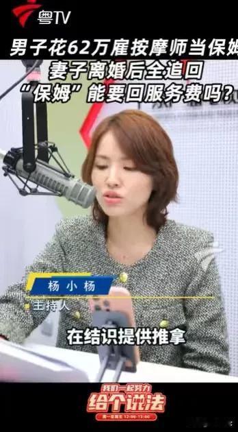 广东,男子去揉肩按背,认识一名女技师,非常喜欢她,就花了62万雇她为保姆,不料被妻子察觉了猫腻,妻子出马,把62万全部追了回来,就和男子离了婚。 男子感觉腰酸背疼,又感觉心里空荡荡的,不知不觉,他就走到了一个地方。 里面灯火辉煌,女技师们,一个个晃动着忙碌的身影,给顾客们揉揉肩,按按背。 男子突然有了想法,就进去找了一名女技师,他闭目养神,任由女技师帮他放松。 当他的腰酸背疼,有了缓解之后,男子和女技师闲聊起来,他们一见如故,相谈甚欢,关系越发亲密。 为了女技师长相厮守,男子想了一招瞒天过海,他要欺瞒妻子,又想保住家庭,他和女技师签了一份《保姆雇佣合同》,里面约定,他雇佣女技师为保姆,女技师需要为他洗衣做饭,打扫卫生,照顾他。 两人约定的报酬是,每个月的工资是6500元,男子给保姆的生活用品费用2500元,给保姆的养老补偿是1500元,但每个月要给保姆的钱就达到10500元。 这个保姆的工资实在高,妻子一开始得知丈夫找了这么一个保姆,每个月要给这么多的钱,她其实就已经感觉不对劲了。 后来她看到这个保姆年轻漂亮,干活却马马虎虎,妻子警惕了。 妻子的察觉果然没有错,在她仔细观察下,丈夫果然和保姆有一腿,后来,妻子更是发现,丈夫在短短的几个月内,居然给保姆62万。 62万的保姆费,仅仅只是几个月的费用,这请的哪里是保姆?简直就是小仙女。 哪个雇主会请如此高价保姆,妻子知道了,丈夫和保姆的关系不简单。 后来丈夫也承认自己出轨了,妻子这才意识到,那62万元的支出不是保姆费,而是丈夫讨好保姆的赠与。 62万元,这对于妻子来说,这是一笔不小的费用,年轻的时候,她和丈夫白手起家,努力奋斗,好不容易有了点积蓄,就想着好好用这些积蓄来养老。 这下好了,丈夫花心,居然要将这62万赠与给心上人,还瞒天过海,欺骗她。 妻子对丈夫失望了,丈夫对她的冷漠,她已经感到深深的背叛,她非常愤怒又痛苦。 更让她愤怒的是,丈夫未曾好好待她,给她应有的仪式感,更没有给她偶尔的浪漫。 他却为了讨好保姆,居然给62万,这一笔费用,有着妻子的心血,她可不想白白给丈夫,讨好保姆。 于是她起诉了保姆,要求保姆返还62万。 保姆却声称,这62万,可不是什么赠与,这是她的服务费,是她辛辛苦苦干活挣来的。 说完,保姆还拿出他们所签的保姆雇佣协议,上面明确规定,有工作内容,有薪水报酬。 但短短的几个月,按照约定,保姆能够拿到手里的,最多也就10万元,但她已经拿到了62万,这一笔费用肯定是有不合理之处的。 后来法院经过审理认为,这62万,并非是履行了合同义务,所获得的报酬,因此这62万,并非是合同约定的,是属于赠与。 这62万认定为赠与之后,一切的有利证据就被妻子握在手中了。 并且男子承认自己出轨了,在婚姻存续期间,他和保姆之间有不正当的关系,这是有违公序良俗的。 《民法典》第143条规定:具备下列条件的民事法律行为有效: (一)行为人具有相应的民事行为能力; (二)意思表示真实; (三)不违反法律、行政法规的强制规定,不违背公序良俗。 有违公序良俗的行为,不受法律保护,因此男子给保姆的62万,属于赠与,并非合同约定的报酬,法院判决,保姆需要返还这62万给男子的妻子。 妻子顺利拿回了这62万, 接下来她就要和丈夫断绝关系,她要和丈夫离婚。 由于丈夫背叛在先,妻子提出的这个诉求是合理的。 《民法典》第1091条规定:有下列情形之一,导致离婚的,无过错方有权请求损害赔偿:(一)重婚;(二)与他人同居;(三)实施家庭暴力;(四)虐待、遗弃家庭成员;(五)有其他重大过错。 在婚姻关系当中,只要有一方背叛,婚姻就难以继续下去。 而且背叛的行为,不利于家风建设。 《民法典》第1043条规定:家庭应当树立优良家风,弘扬家庭美德,重视家庭文明建设。夫妻应当互相忠实,互相尊重,互相关爱;家庭成员间应当敬老爱幼,互相帮助,维护平等、和睦、文明的婚姻家庭关系。 即使妻子不提出离婚,两人的关系,难以和好如初。 那么你对男子的做法有何看法呢?