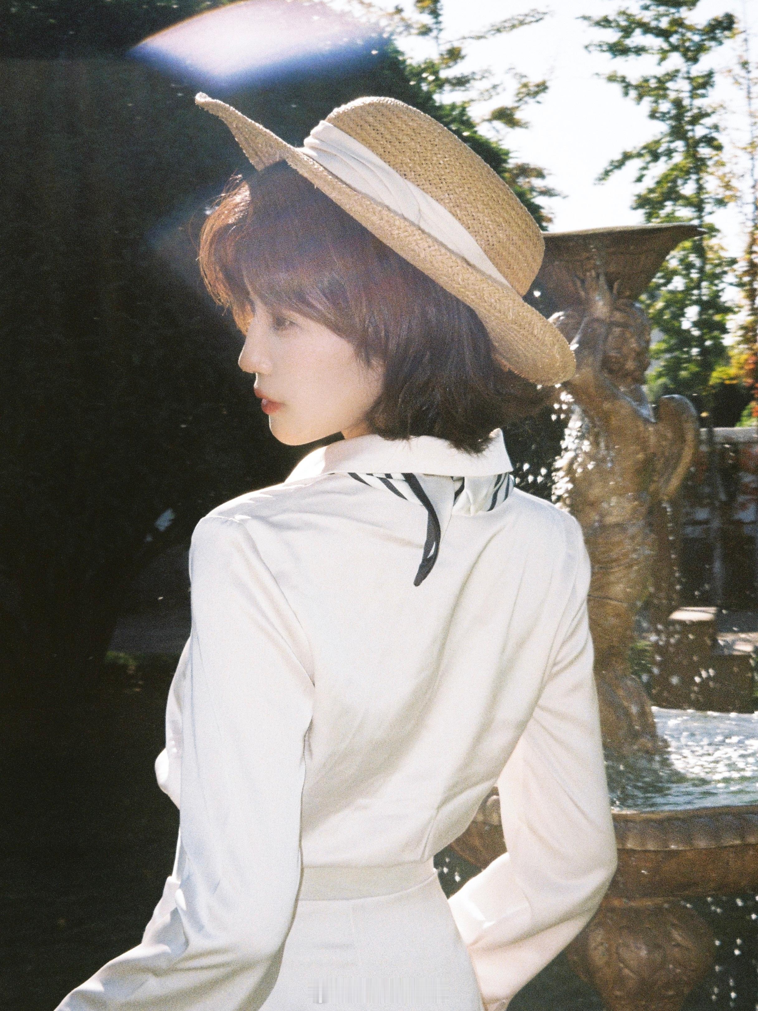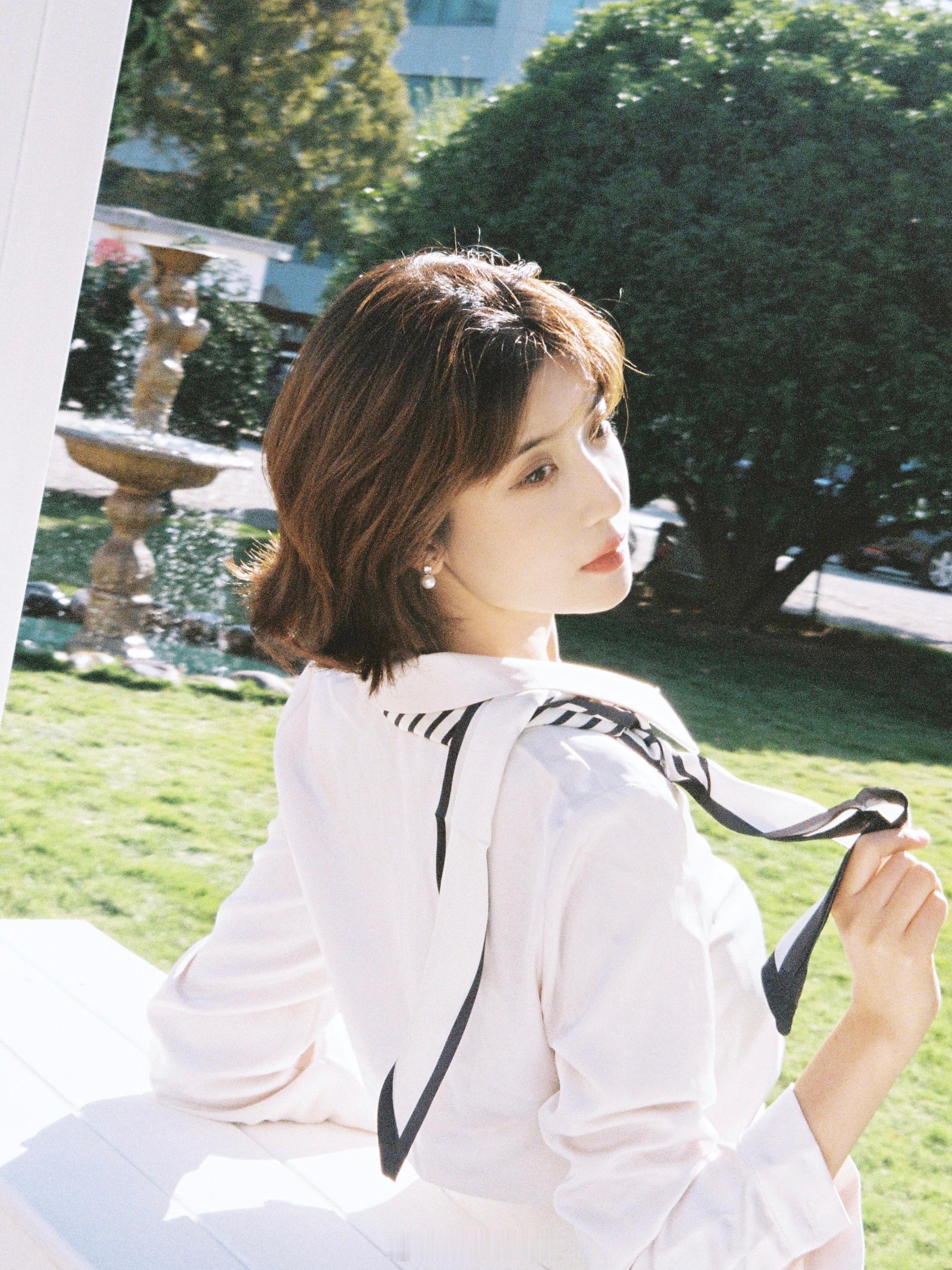 优雅咖啡馆里,甜美少女轻倚木椅,微笑动人。