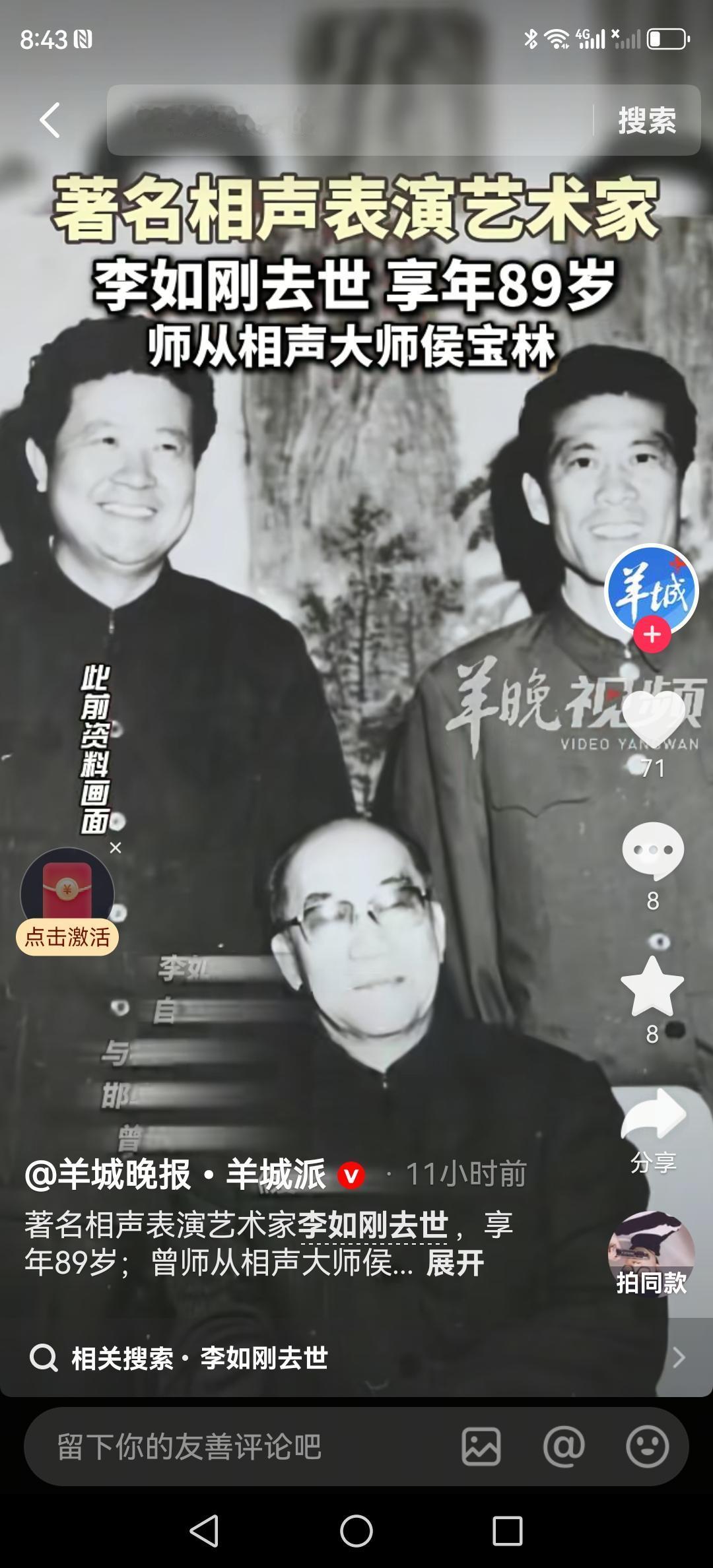 相声圈里又一位大师走了!李如刚先生因为生病永远离开了我们,享年89岁,侯宝林先生的弟子里,又少了一位。 这位在相声界活跃了一辈子的老艺术家,最后是在石家庄走完了他89年的人生旅程。就在清晨6点23分,医院那边传来了这个让人难过的消息,好多喜欢曲艺的朋友听了心里都特别不是滋味。李老这辈子,一直都在为相声这门艺术的传下去和往前发展忙活。他在台上的时候,一开口就是俏皮话,逗得大家哈哈大笑;台下呢,对徒弟们也特别耐心,总愿意教东西,一点都不藏私。 我还记得去年在电视节目里看到李老表演,那精神头哪像是快90岁的人啊!他说的一段《卖布头》,每个字都清楚,特别有劲儿,包袱甩得也特别准,正好能逗乐观众。现在想起来,那竟然就是最后一次在电视上看到这位老艺术家了。 相声这行当有个老规矩,讲究“说学逗唱”,李老最擅长的就是“学”这本事。他模仿各地方言特别像,一点都不差;学市井里小贩吆喝,更是跟真的一样,特别生动。他的徒弟后来提起,李老总跟他们说:“相声得贴近老百姓的生活,要让大伙儿能听明白,能真心笑出来。” 89年的一辈子,60多年演相声的日子,李老就这么走了。但他留下的东西可不只是那些让人记住的相声段子,更有对老艺术的那份认真和坚持,这点特别难得。现在这个日子过得飞快的时代,还能有多少人安下心来,好好听一段老辈人说的相声呢?你心里有没有哪段李老的相声,是让你笑过又记住的? -search.byteimg.com/img/pgc-image/15381473154572fcf35d9c4~480x480.jpeg相声界前辈逝世 相声大师去世 李如刚