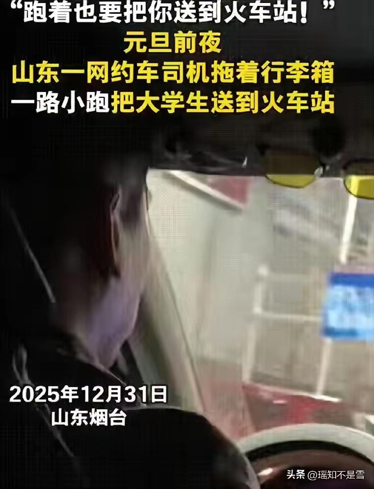 跨年夜的烟台火车站,到处都是赶车的人,挤得满满当当。就在这时候,一个拖着大行李箱的女生,堵在长长的车流里动弹不得,眼看回家的火车时间一分一秒过去,急得快哭了。52岁的网约车司机王师傅,一个举动直接让无数网友看哭了!他没多说一句话,直接扛起箱子就带她往小路跑,手上的手套都磨破了个洞,他自己也没顾上换。 巷子里的雪还没化,路灯照着老师傅鬓角的白头发,亮得显眼,手背上青筋都鼓起来了,却一直说“不沉,不沉”。更让人心里一暖的是,巡逻的交警看到这情况,赶紧骑上摩托车接力护送,三个人踩着火车检票口快关的哨声,一路冲进了站台。后来女生才知道,那天晚上火车站光发送的旅客就超过了3.2万人,三条主要马路堵了整整45分钟。 总有人抱怨现在的人都冷冰冰的,可王师傅那句“就算跑着也得把你送到”,还有小李警官骑的摩托车,其实就是想告诉我们:最让人心里发颤的温暖,往往就藏在陌生人不经意的小举动里。你有没有遇到过这种在寒夜里拉你一把的陌生人?2025跨年回家 马路堵了正正45分钟 52岁网约车司机举动