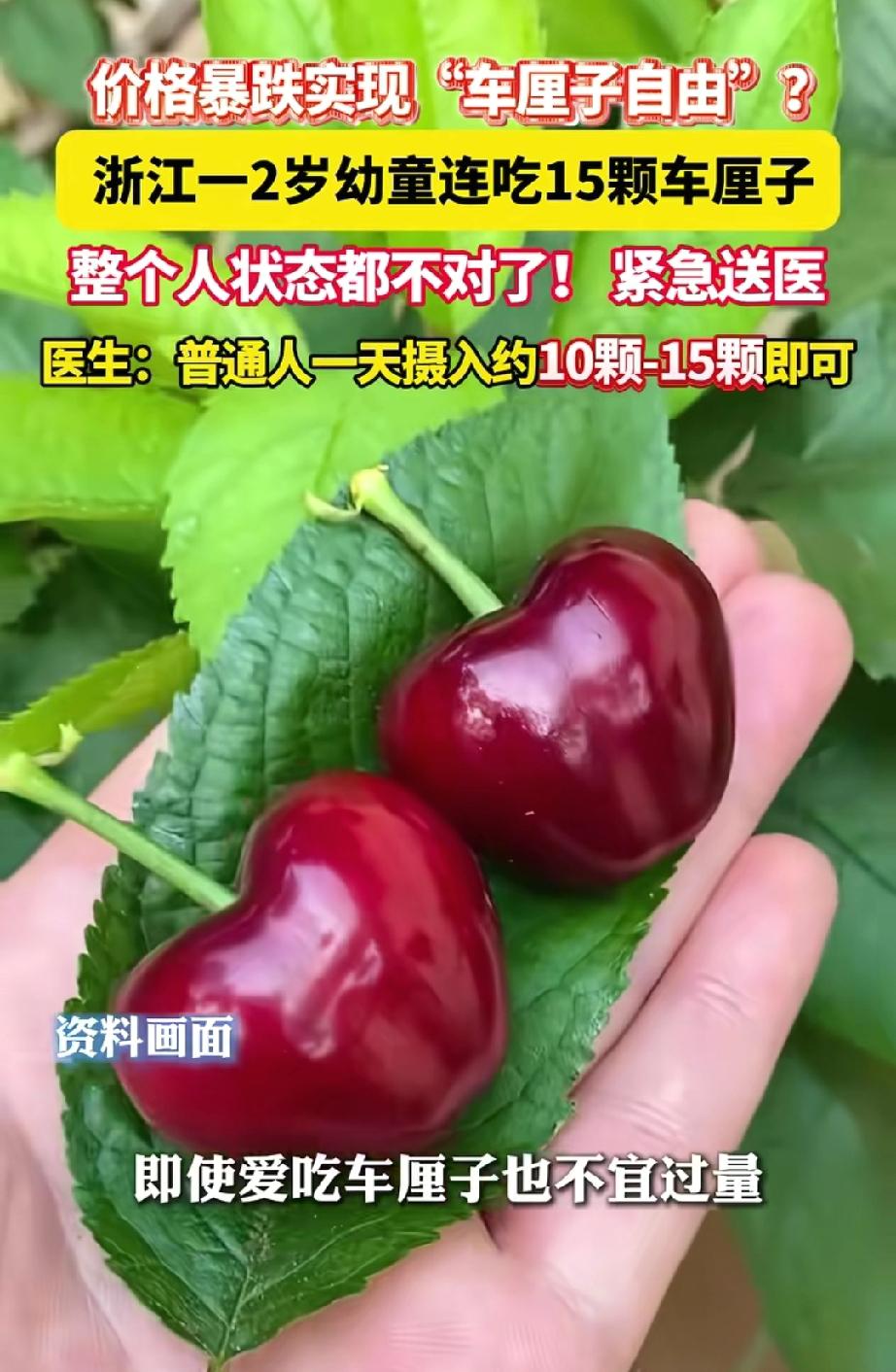 医生都没想到是这原因!浙江一宝妈瞅着车厘子价格大降,果断买了好几斤回家,就想实现“车厘子自由”。2岁的儿子也跟着解馋,一次性吃了15颗,结果没两天就精神萎靡、呼吸沉重,送医一查,急性肠胃炎还引发了酸中毒! 咱当家长的,看到车厘子价格砍半,是不是都想给娃多塞几颗?这宝妈也是这么想的,买了好几斤,一家人吃得那叫一个满足。2岁的娃凑着热闹,一口气吃了15颗,任谁看了都觉得是件乐事。 可谁能料到,才过两天娃就没了精气神,呼吸还变重了,这换哪个家长不揪心? 赶紧送医院检查,急性肠胃炎还酸中毒!连医生一开始都以为是病毒感染,最后才发现是吃太多车厘子惹的祸。 好好的“自由”吃果,咋就把娃折腾进医院了呢? 为啥营养又美味的车厘子会“伤人”? 关键就在一个“量”字。车厘子富含纤维素,性质偏温。成年人适量吃对身体好,但小孩尤其是婴幼儿,消化系统还没长好,吃多了特别容易消化紊乱。 营养专家说了,普通成年人一天吃10到15颗(大概100-150克)就够了。要是有慢性肾病、糖尿病、肠胃不好的人,还有小朋友,那得严格控制量,家长也得多盯着点。 网友们看完这事,评论区炸开了锅。 有人说:“我还打算趁便宜多买些给娃吃呢,这下可得悠着点了!” 还有人说:“我家娃上次吃了几颗就拉肚子,原来真不能多吃!” 不管啥东西多好吃、多便宜,吃起来都得有个“度”。就像咱们吃饭,再爱吃的菜也不能一顿吃撑,水果也是一个理儿。咱们要的是吃得开心又健康,可不能为了贪嘴把身体搞坏了。 另外,车厘子上可能有樱桃果蝇的幼虫,光用水洗不掉。吃之前先用淘米水泡15分钟,再用盐水泡10分钟,把脏东西都洗干净才安全。 咱们追求的“车厘子自由”,是能放心吃、健康吃,不是不管不顾瞎吃。记住这个“度”,咱们才能真正享受车厘子的甜,也让家人吃得安心。 父母疼爱孩子,要为长远考虑。真正的“自由”,不是由着性子乱吃,而是要在美味和健康之间,找到最安全的平衡点。