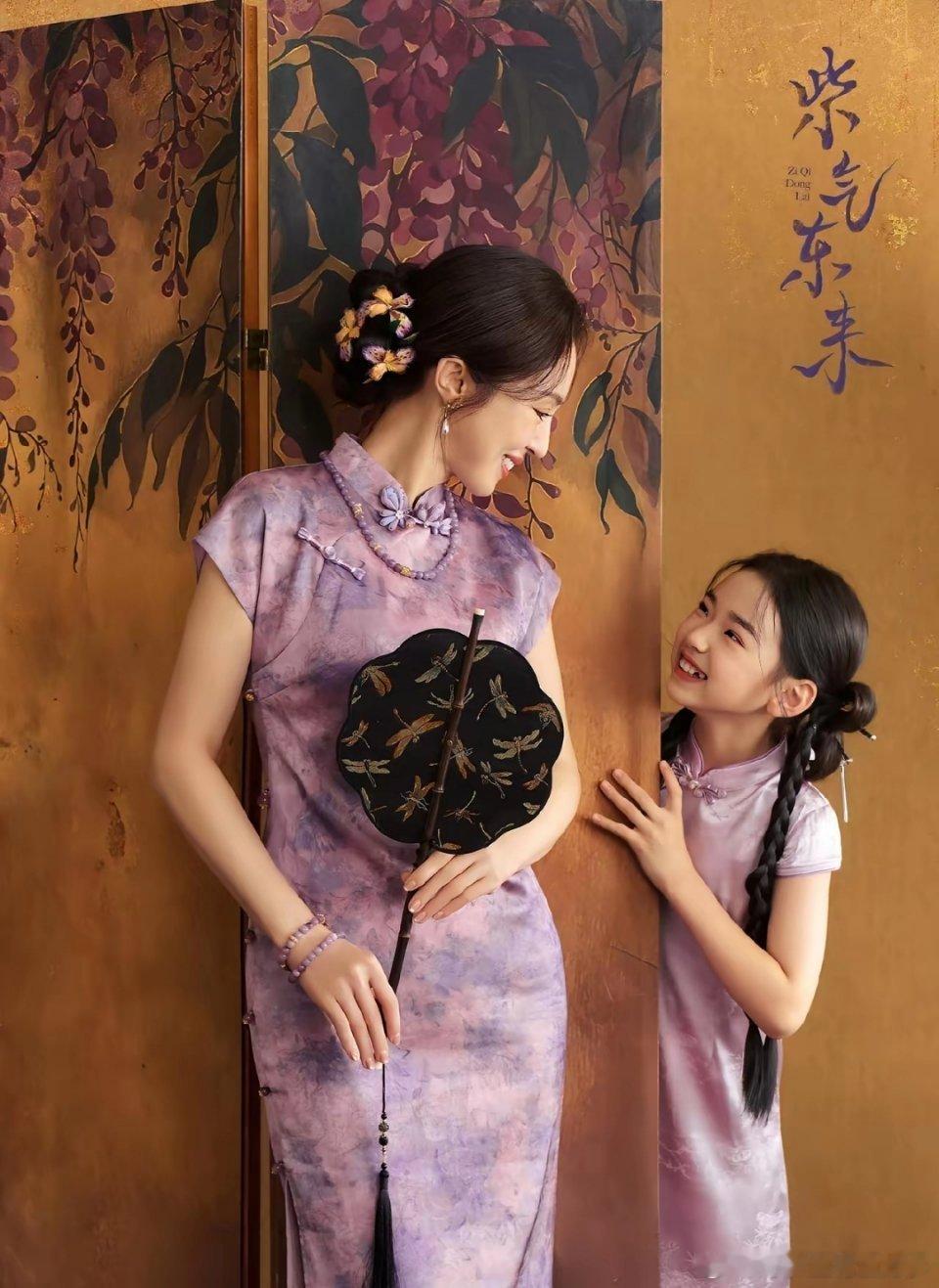 董璇,哪是在晒母女新年照,她和小酒窝这么一拍,分明是想骗大家赶紧生女儿!不得不说,终于看懂小酒窝强的颜值强在哪里了?紫色旗袍一穿,古装这块她真的就是行走的水墨画。尤其是这次的妆造和发型,完全就是乖巧灵动的小可爱。图一这张真是越看越喜欢。董璇也是一如既往地风韵犹存,张维伊还是有福气的