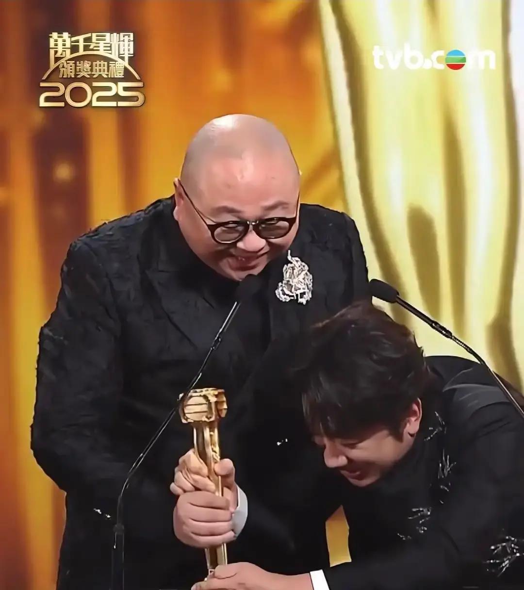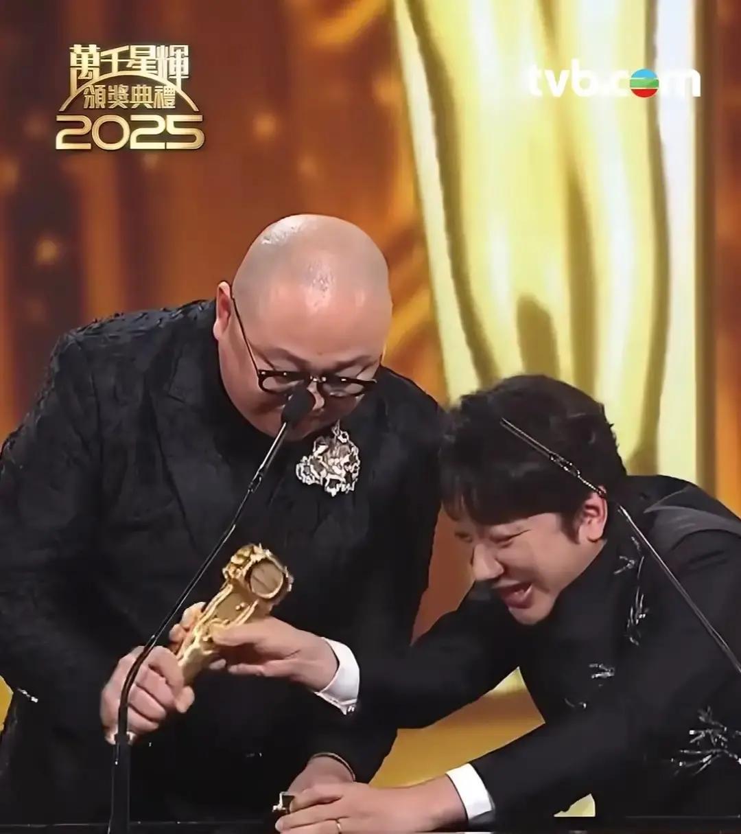 奖杯当场碎成渣 林盛斌刚把最佳男主持抱怀里,底座啪一声断成两截,白色石膏碎得满桌都是。林晓峰蹲下去捡,镜头扫过,断面像掰开的粉笔。 TVB道具部向来抠门。往年奖杯好歹是亚克力,今年直接石膏上色,一磕就碎。省下的钱还不够买一盒好盒饭。有人猜这只是道具,真货后台藏着,可道具也舍不得用塑料,抠到极致。 一个奖值不值钱,不在大小,在心意。观众盯着屏幕,看见的是碎裂的体面。艺人在台上笑,心里多半在算:明年还会不会轮到自己去捡渣。