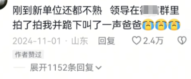 刚到新单位还都不熟, 领导在群里拍了拍我并跪下叫了一声爸爸