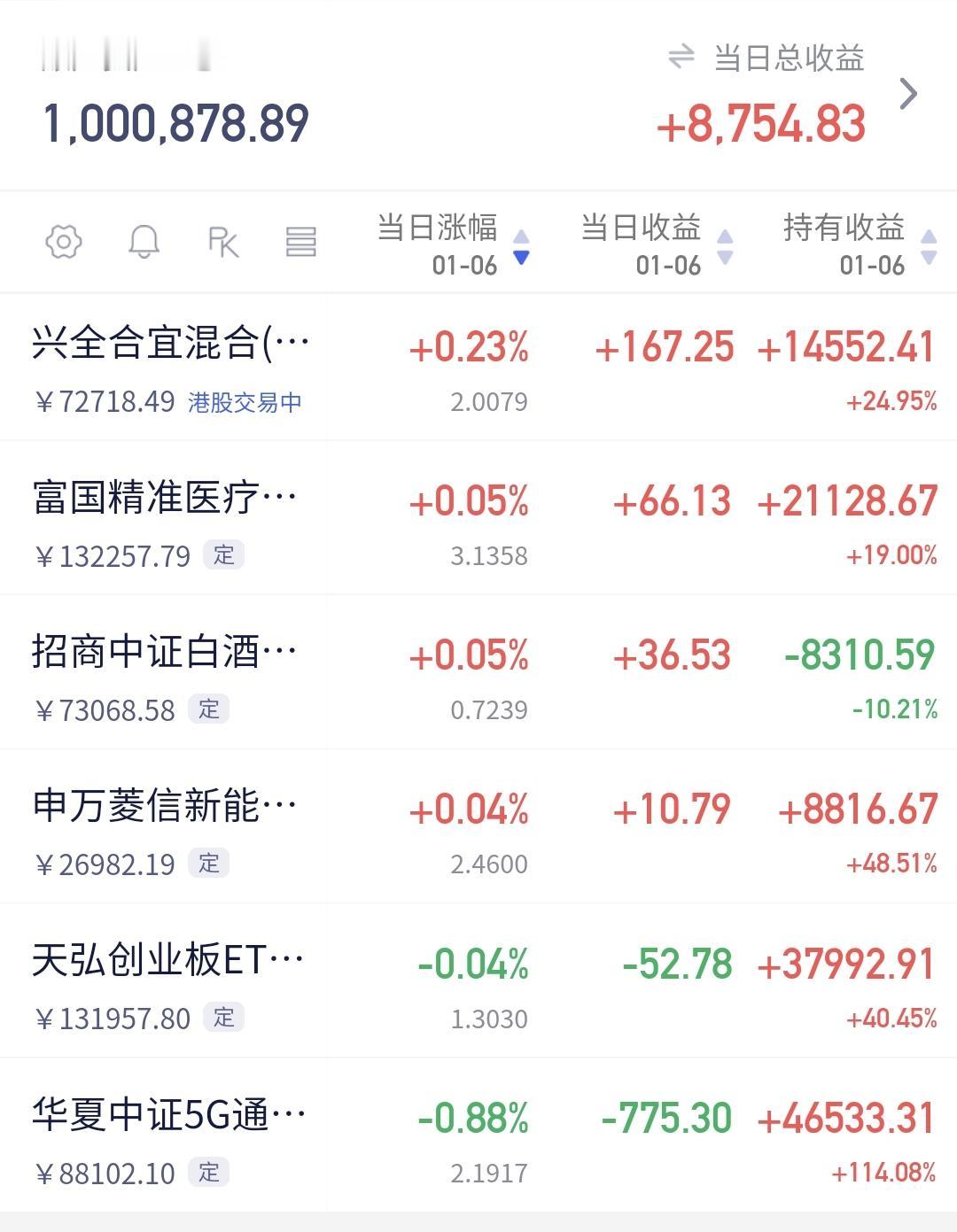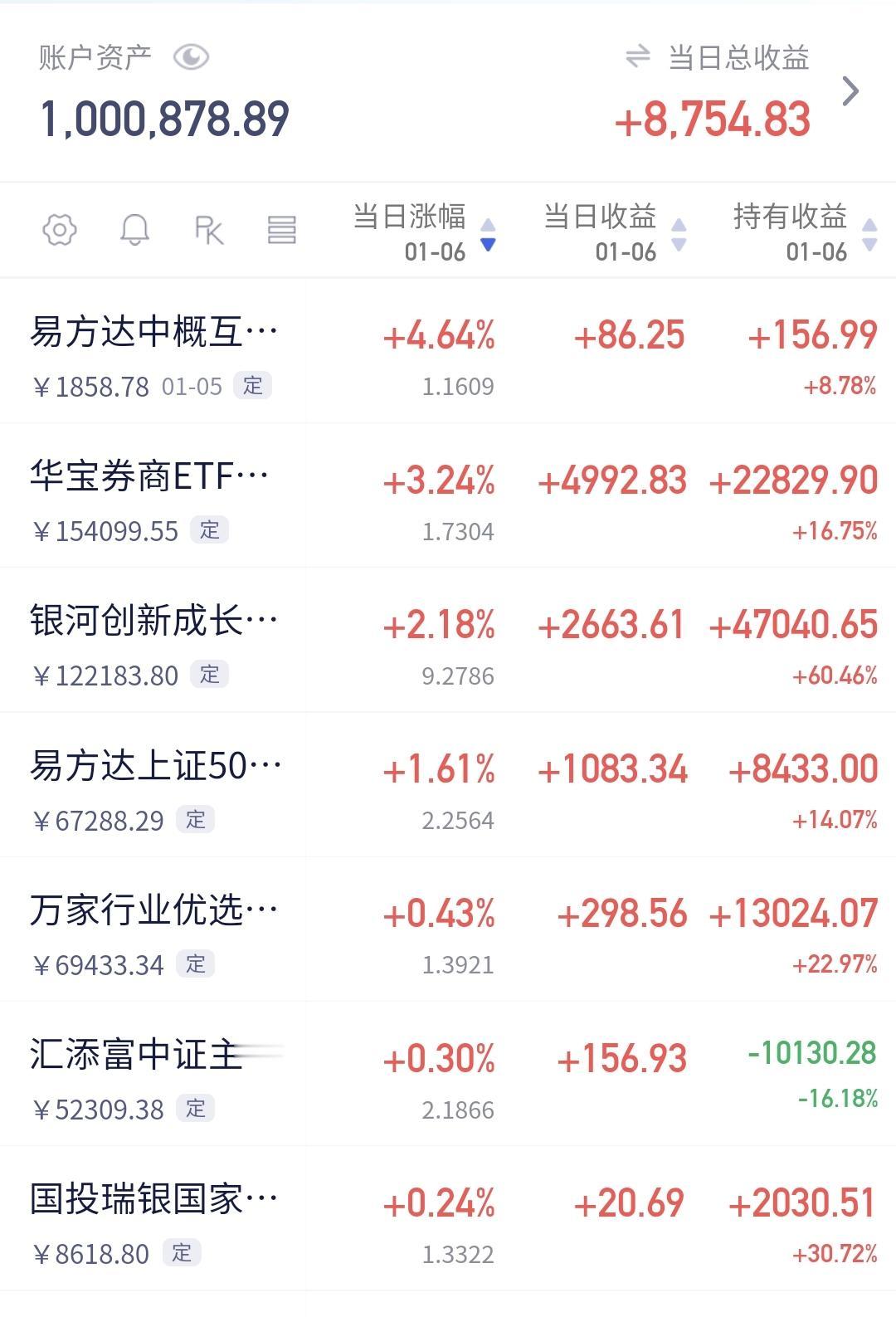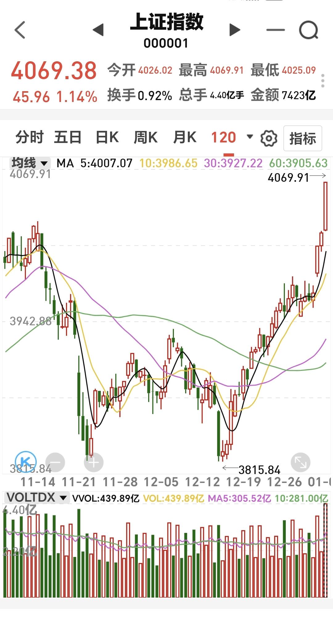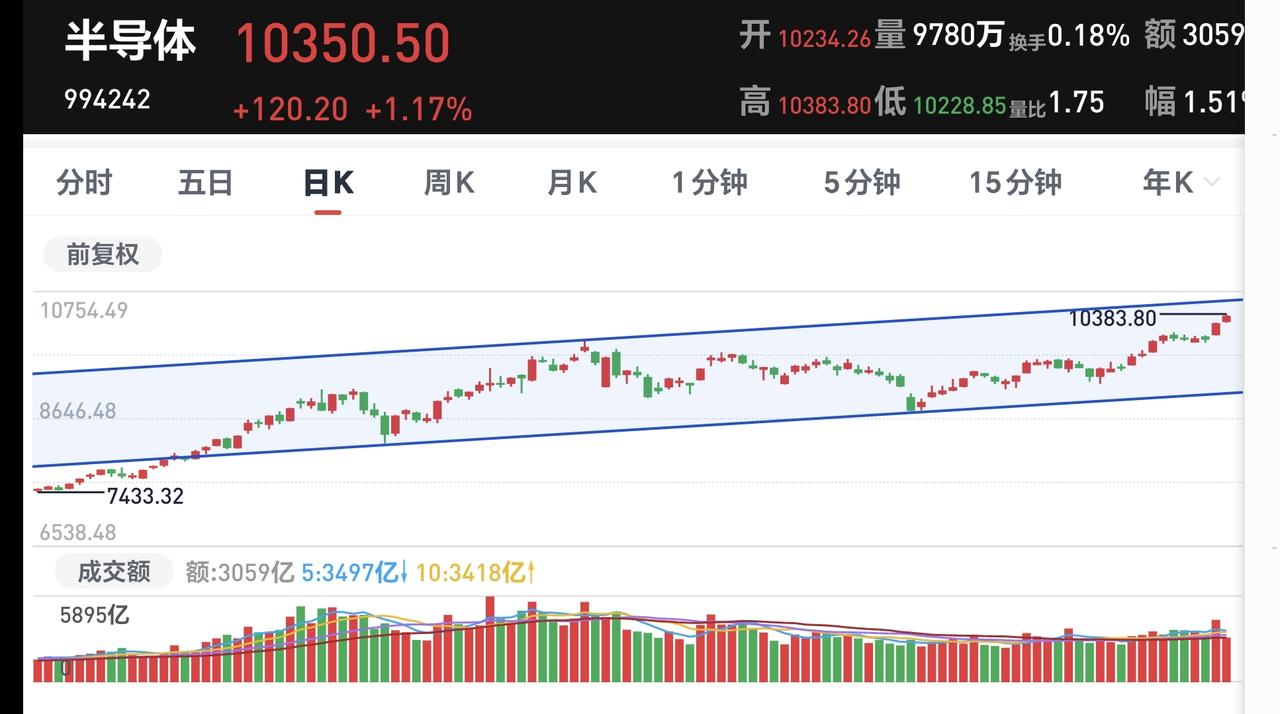 基金:什么时候考虑要不要再一次止盈 今天市场再创新高,再一次点燃了大家的情绪,有人已经看到了今年的6000点上方,我也是愿意到达这个位置,大家都挣钱就是好事情,大家都挣钱就会促进消费,消费起来就会带动方方面面,这就是良性循环。 中午收盘的时候,三大指数涨跌不一,创业板指小跌,上证指数和深成指上涨,创业板指下跌了0.04%,收于3293点,上证指数上涨了1.14%,收于4069点。 整个股票市场,上涨3698家,下跌1594家,涨停108家,跌停3家,上涨家数多于下跌家数,达到了百股涨停。 持有的基金中,中午收盘的时候,估值上涨幅度最大的三个板块是:证券板块,芯片半导体板块,上证50板块,估值下跌幅度最大的两个板块是:5G板块,创业板指,估值整体上涨了8754元。 整个基金市场,上涨13746家,下跌5315家,上涨幅度超过5%的16家,没有下跌幅度超过5%的基金。 图9是今天基金的上涨排行榜,图10是今天基金的下跌排行榜,图11是ETF上涨幅度排行榜,图12是今天基金的加仓榜,图13是今天基金的减仓榜。 1:今天上午黄色线是上窜下跳,中午收盘之前黄色线在蓝色线下方,但两条线之间的敞口并不是很大,下午继续观察两条线位置会不会有变化,如果黄色线不能上穿蓝色线。或者是黄色线继续向下拉开与蓝色线的敞口,也还是要注意的。 2:今天上午两市累计成交17812亿,相比于昨天上午放量了9%,这样的放量幅度也属于温和放量,成交量方面是没有问题的,从成交量方面看,今天下午应该是问题不大。 3:我们来看一下下面的截图14,这是主力资金进出板块的情况,主力资金净流入最多的三个板块是:有色金属板块,非银金融板块,证券板块,主力资金净流出最多的三个板块是:高端制造板块,5G板块,通信板块。 4:中午收盘的时候。持有的芯片半导体板块基金银河,估值上涨了2.18%,是持有基金中上涨幅度排名第二的基金,这个板块今天加仓排行榜见下面的截图15,持有人数排行榜见下面的截图16,加仓人数最多的是华夏半导体材料设备,持有人数最多的是永赢半导体产业智选混合。 我们来看一下下面的地图17,这是半导体板块日K线图,从图中可以看出,我画了两条倾斜向上的斜线,这是半导体板块日线级别上涨通道,现在的位置处于这个上涨通道内,今天的上涨并没有改变这个上涨趋势,持有的人可以继续持有。 我们来看一下下面的截图18,这是半导体板块周K线图,从图中可以看出,我画了两条倾斜向上的斜线,这是半导体板块周线级别上涨通道,现在的位置也是处于这个上涨通道中,也就是说,半导体板块周线级别也是处于上涨趋势中,持有的人可以继续持有。 半导体板块日线级别和周线级别都是处于上涨趋势中,持有的人可以继续持有。 许多人有误会,把认为可以持有就理解为可以进场,可以进场和可以继续持有是两个概念,可以进场是新开仓位,可以继续持有是保持仓位。 今天市场创4034点新高以后,我是暂时没有开新仓位的想法,近期主要任务是找机会再一次止盈,昨天和今天的上涨速度都是比较快的,在这样快速上涨的情况下,上冲到4100点上方概率很大,不要轻易离场,上涨速度快,不容易停下来,就像下跌速度快也不容易停下来一样,我们要等待这个快速上涨的结束,在后面发现缓慢上涨的时候再观察,再考虑要不要进行再一次止盈。 我每天都会分享我的观点,我的观点只代表我个人的看法,不能作为你操作的依据,据此操作后果自负。