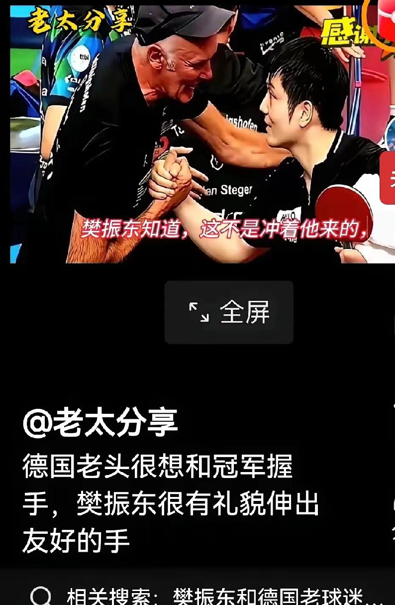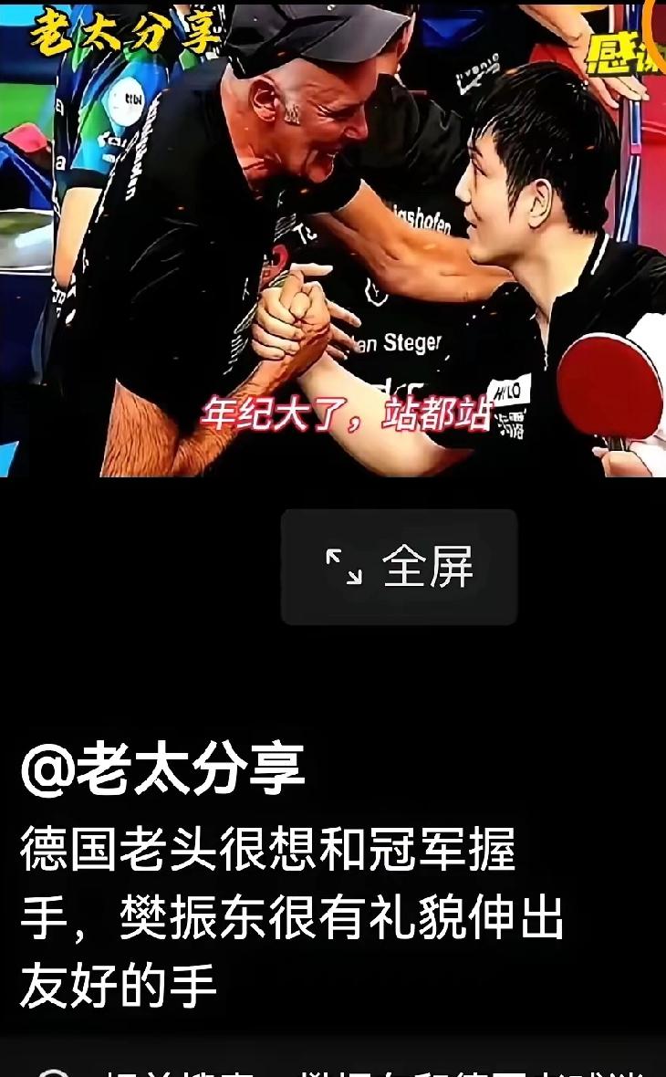 “10秒握手刷屏!樊振东这波操作,才是体育最动人的模样!” 谁能拒绝这样的双向奔赴?75岁的德国球迷汉斯,年轻时冒雨雪追冠军,如今拄拐也要赴赛场之约;樊振东赛后特意驻足,用紧紧10秒的握手,回应这份跨越国界的热爱。 这哪里是简单的偶像与粉丝互动,分明是体育精神最温暖的传递。冠军的光环从不只来自奖牌,更来自这份懂得尊重与回馈的温柔。樊振东用行动证明,真正的强者,既能在赛场披荆斩棘,也能在台下温柔以待每一份真诚的喜爱。 体育的魅力从不止于输赢,更在于它能打破语言和距离的隔阂,让陌生人因热爱相连。你见过最戳人的偶像与粉丝互动是什么样?来评论区分享~