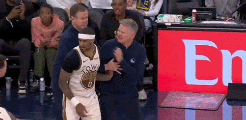 科尔暴怒,欲打裁判,被驱逐出场! 这个球来自于连续两个回合判罚的情绪累积。 一个是库里被犯规后抛投命中,裁判吹罚无效。这个球本质上确实是先犯规,但裁判没有在犯规发生时响哨,反倒看着库里抛投进了之后才吹罚先犯规,进球无效,这激怒了库里和科尔。 然后勇士队的情绪还没缓过来,小佩顿的篮下上篮,明显先碰到篮板,后被快船拍走,是100%的干扰球,结果裁判没有响哨,快船反击到前场,又吹了勇士犯规,科尔一下子就炸了! 这裁判,真的有点扯淡了。