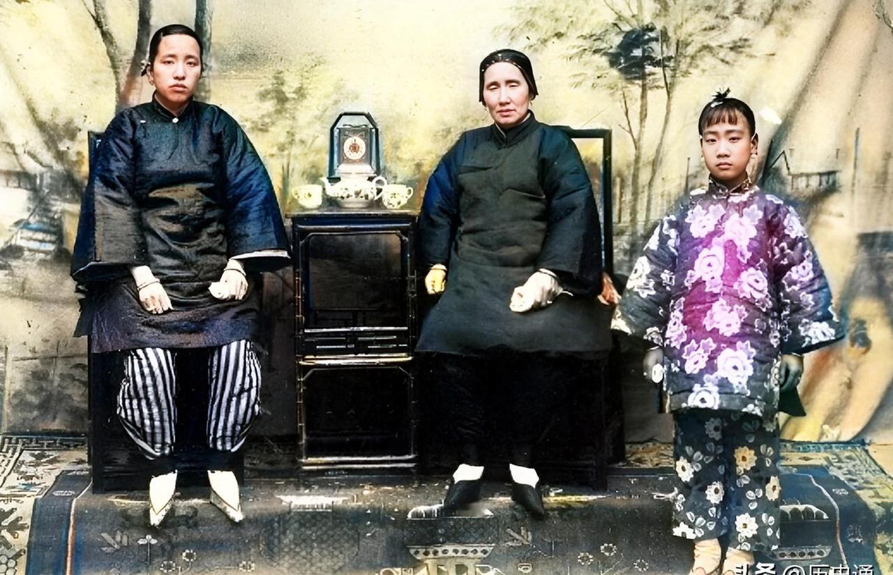 民国时期,山西新绛县祖孙三代合影。 老照片里的三个人,坐姿藏着说不出的规矩。 祖母坐在左边太师椅上,背挺得比门板还直,裹着小脚的双腿并拢成一条线。 母亲挨着她坐右侧杌凳,手里攥着块帕子,指节都发白了。 最小的姑娘站在后排,辫梢垂到蓝布褂子第二颗扣子,脚尖却悄悄往外撇。 这张民国十二年的照片,像块被岁月泡软的馒头,咬下去全是新旧杂糅的滋味。 祖母的靛蓝土布褂子打了三个补丁,针脚细得像蚂蚁爬。 母亲的裤子却印着洋机器织的细条纹,裤脚窄窄地裹着脚踝,在当时算是"时髦打扮"。 我见过山西博物院藏的同期衣物,这种条纹布1920年才从天津口岸运到晋南,寻常人家得攒三个月月钱才买得起。 新绛县那时是棉纺重镇,城里洋布铺子比粮店还多,可照片里祖孙俩的衣服,还是隔着十年的时光。 三个女人的脚最耐人寻味。 祖母和母亲的鞋尖翘得像元宝,鞋帮上绣的莲花却磨得快看不见了。 小姑娘的布鞋是平底的,鞋头方方正正1912年民国政府就下了禁缠足令,阎锡山在山西办"天足会",可新绛乡下直到1925年还有七成女人裹脚。 照片里这双小脚挨着双天足,像两截不同朝代的历史被硬塞进同一个画框。 坐相里的门道比衣服还深。 晋南讲究"左为上",祖母占了最尊的位置,可她双手交叠放在膝头,倒像被捆在椅子上。 母亲半个屁股悬在凳边,身子微微向左倾,二十多年的媳妇生涯全写在这个姿势里。 后排小姑娘站得笔直,却偷偷把重心放在左腿,像是随时要跑出去。 这哪里是拍照,分明是把一大家子的规矩都钉在了相纸上。 前两年在新绛县档案馆,我见过另一张1927年的家庭照。 穿学生装的姑娘们站成一排,个个露出半截小腿,辫子剪成齐耳短发。 讲解员说那是县立女校的毕业照,照片里有五个姑娘的母亲,当年就裹着小脚在校门口等女儿放学。 两张照片隔着四年,晋南的风好像才刚吹开裹脚布的一个角。 母亲那条条纹裤后来怎么样了呢?或许被改做成小姑娘的书包,或许压在箱底成了老鼠窝。 但照片把那个瞬间钉在了1923年的秋天,让我们看见祖母的裹脚布和母亲的条纹裤如何在同一个时空相遇。 这种新旧碰撞的笨拙与真实,才是民国最生动的表情就像刚学会走路的孩子,摇摇晃晃,却非要往前迈。
