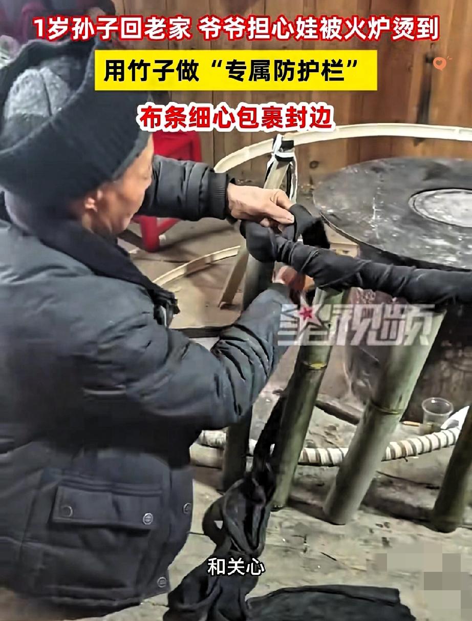 湖北爷爷的竹制防护栏,才是隔辈亲最戳人的打开方式! 不是无脑宠溺,也不是越界干涉,而是把疼爱藏进细节里的智慧。 1岁宝宝对老家烤火炉好奇得打转,爷爷既不想扫了娃的兴,又怕滚烫的炉子伤人,干脆上山砍竹片亲手围起栅栏。 当过木匠的手艺没丢,角磨机磨平锋利边角,软布条仔细包边,每一步都透着“怕你受伤”的小心思。 这份爱不张扬,却比任何昂贵礼物都动人——它不是单纯的情感输出,而是用生活经验给孩子搭起安全屏障。 现在总有人讨论隔辈亲的边界,其实最好的相处就是这样:长辈用自己的方式守护,晚辈懂这份心意的珍贵。 那些看似笨拙的手工,藏着最纯粹的牵挂,也是家族情感最实在的传承。 你家老人有没有为你做过类似的“专属守护”?评论区说说那些让你记一辈子的暖心细节~
