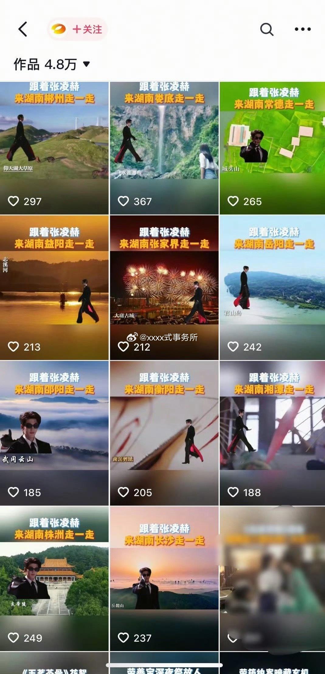 湖南卫视的官抖全是张凌赫 都快成湖南文旅宣传大使了