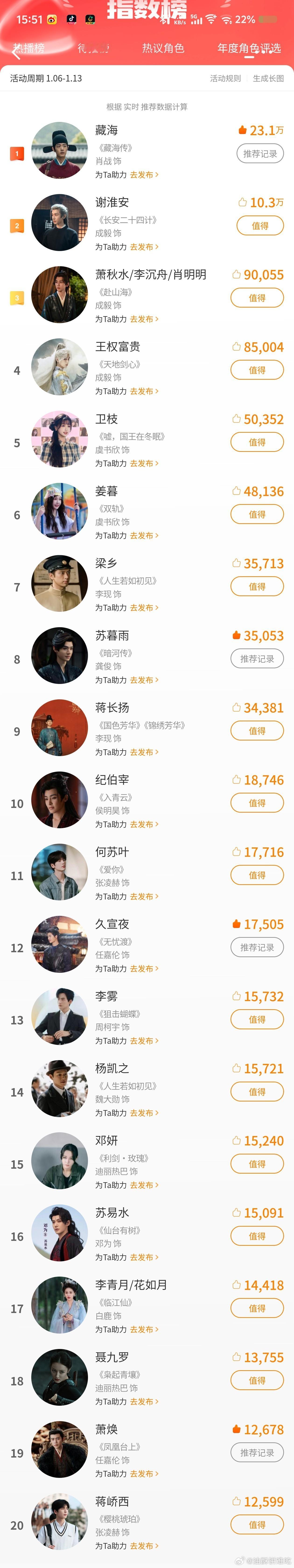 商务季就是不一样,这急得什么犄角旮旯的东西都搞个词条。这指数榜,一个账号可以推荐多个角色,但一个角色只能推荐一次,多个角色上榜有啥可吹的