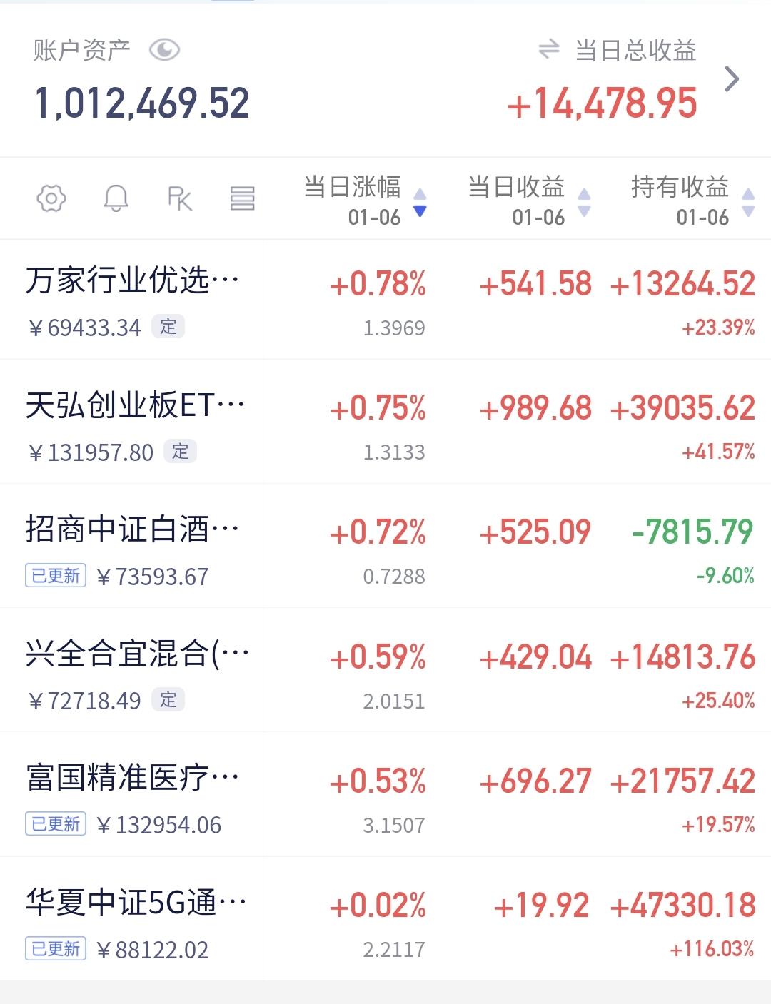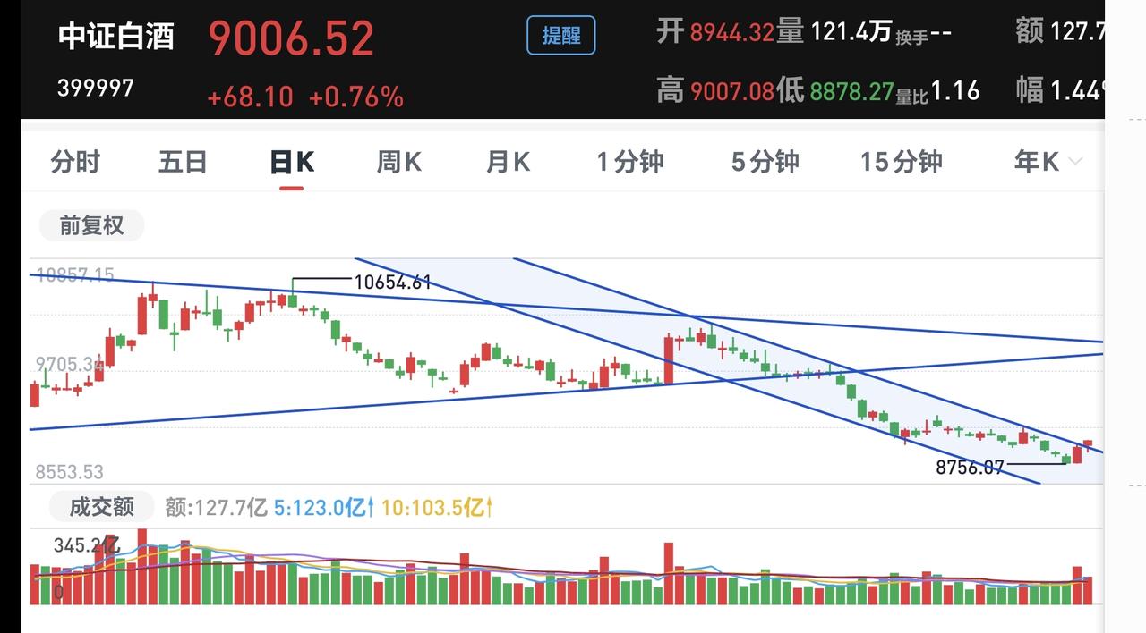 基金:白酒板块今天的上涨,有可能是关键性的上涨 持有的基金净值大部分已经更新,全部都是上涨,上涨幅度最大的三个板块是:证券板块,军工板块,芯片半导体板块,上涨幅度最小的三个板块是:5G板块,医疗板块,兴全合宜,净值整体暂时上涨了14478元。 白酒板块基金净值也已经更新,今天上涨了0.72%,昨天这只基金也是上涨的,连续两天上涨,真的是很不容易。 这个板块今天加仓排行榜见下面的截图3,持有人数排行榜见下面的截图4,排名第一的都是招商中证白酒。 我们来看一下下面的截图5,这是白酒板块日K线图,从图中可以看出,我画了两条倾斜向下的斜线,这是白酒板块日线级别短期下跌通道,今天的上涨突破了这个下跌通道的上轨,也就是说,白酒板块日线级别短期下跌趋势有可能会被改变,如果这个突破有效,如果这个突破能够带动白酒板块日线级别长期下跌趋势的改变,这个突破就有可能是历史性的突破,近期需要继续观察这个突破的有效性。 我们来看一下下面的截图6和7,这是白酒板块周K线图和月k线图,图中我都画了两条倾斜向下的斜线,分别是周线级别和月线级别的下跌通道,现在白酒板块周线级别和月线级别都是处于下跌趋势中,但如果日线级别下跌趋势被改变,转变为上涨趋势的话,将来也有可能会带动周线级别和月线级别下跌趋势的改变,但这需要很长的时间。 每只基金每个交易日都有涨或者是跌,每个板块每个交易日也都是有涨或者是跌,但绝大部分的涨和跌都是无效的波动,不能改变现有的趋势,只有那些能够改变趋势的涨和跌,才是需要我们重视的。就像今天白酒板块的上涨一样,今天的上涨幅度虽然没有昨天的上涨幅度大,但有可能今天的上涨比昨天的上涨更重要,因为,今天的上涨有可能会改变白酒板块日线级别的下跌趋势,我们不能盯住每天的涨和跌,我们要盯住那些关键线的涨和跌。 白酒板块基金我持有73234元,持有亏损8349元,持有亏损率10.26%,今天晚上禁止更新以后,持有亏损率会到10%以下,累计收益1985元,每天定投200块钱,这个定投会持续到收益率转正,或者是持有金额达到10万元,其中的一个符合要求就停止定投。 我每天都会分享我的观点,我的观点只代表我个人的看法,不能作为你操作的依据,据此操作后果自负。