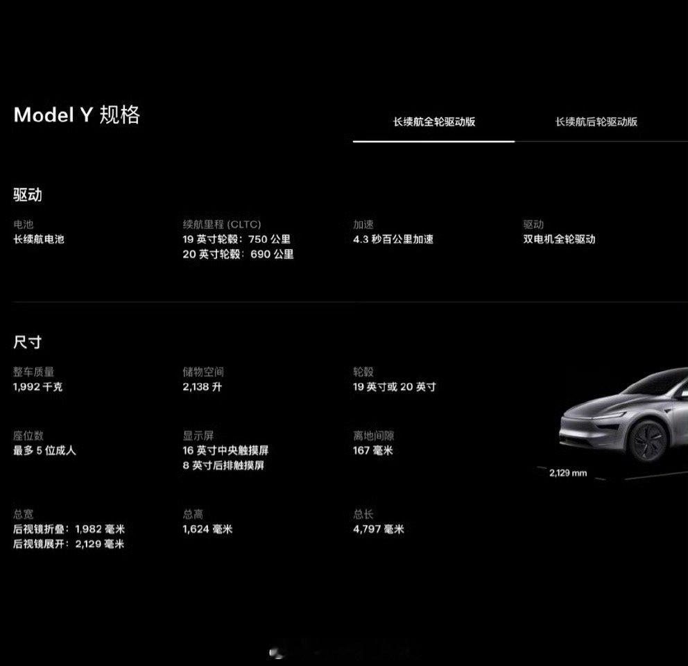 特斯拉ModelY推出2026小改款居然又有小改款了!!!Model Y前排的显示屏从15.4英寸1080p改成16英寸2k屏就是一个小升级内饰的话从白色变成了黑色就这样