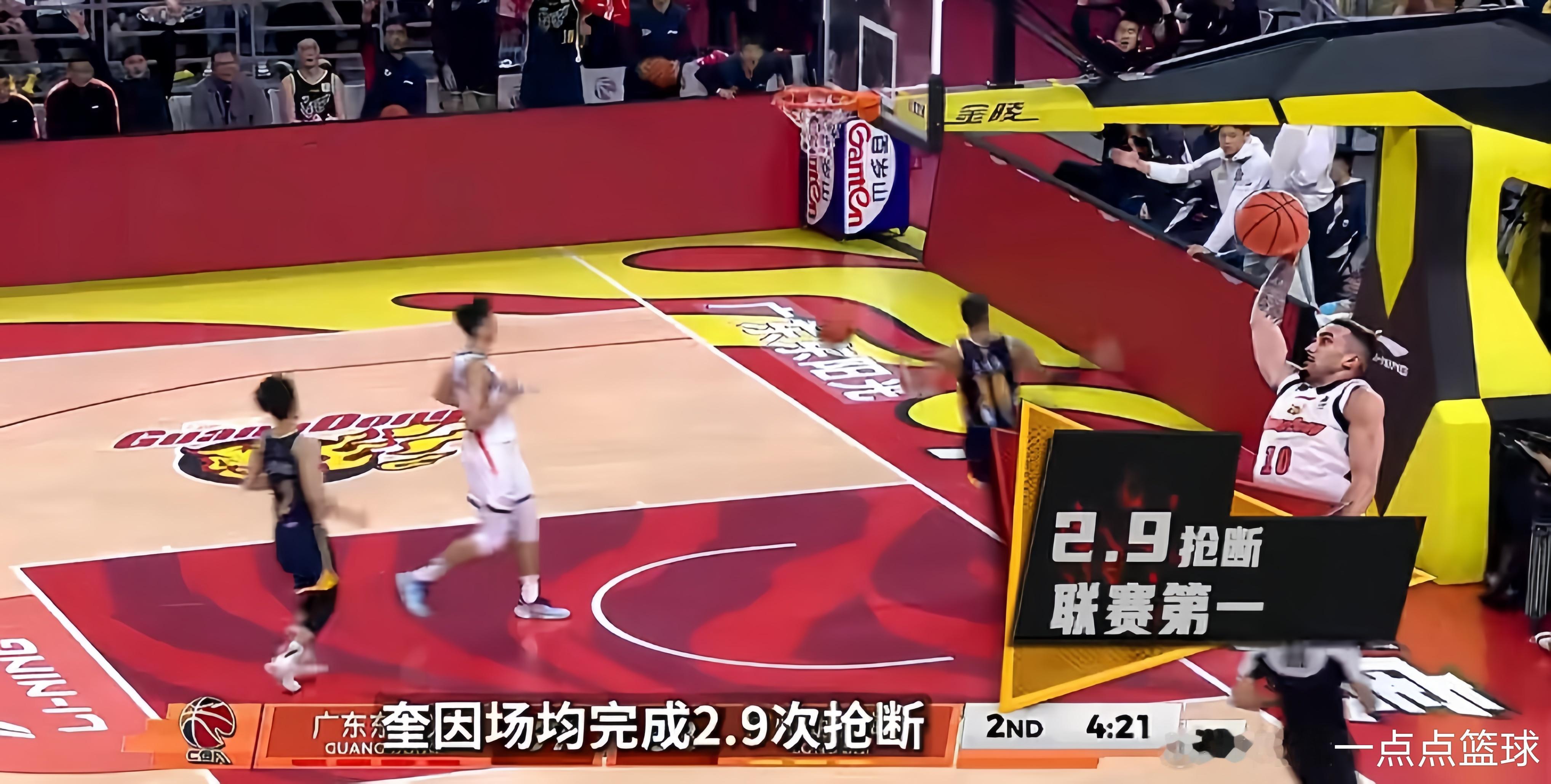 广东男篮外援奎因当选了2025-26赛季第一期卡特彼勒月度最佳防守球员!第一轮至第九轮的常规赛中,他出战了8场比赛场均可以贡献2.9次抢断,抢断率高达7.3%,两项数据均领跑全联盟;1.9%的盖帽率亦位居同位置球员榜首。他参战的这八场比赛,广东男篮最后均获得了比赛的胜利,广东男篮同期百回合失分仅108.7分,防守效率排行联盟第五位,里面有很大一部分功劳属于他!希望继续可以把投射稳定性再提高一点,尤其是三分球的命中率,那几乎就是CBA顶级外援的能力了!