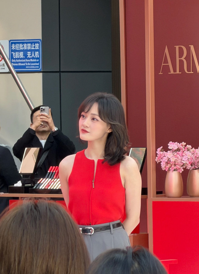 文淇深圳活动生图文淇深圳活动生图,文淇今日活动路透,红色背心灰色西装裤造型干练