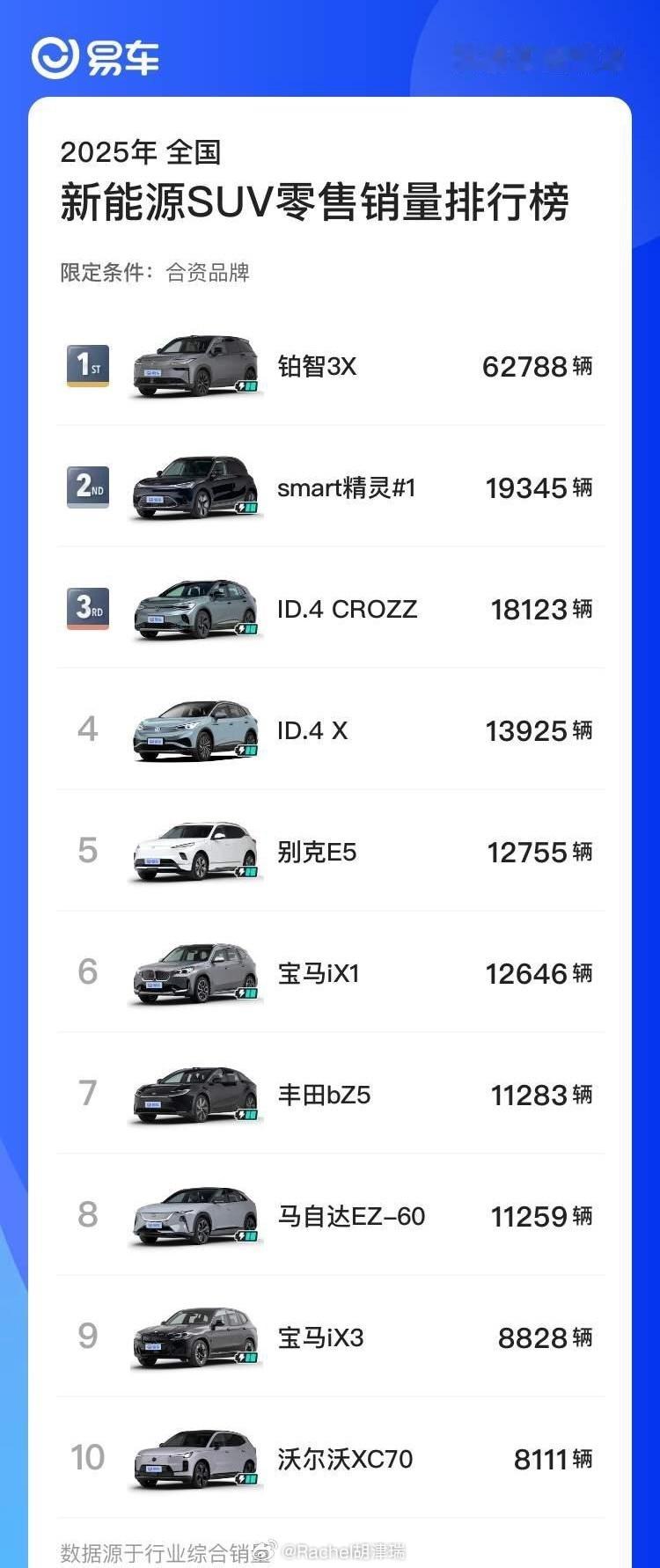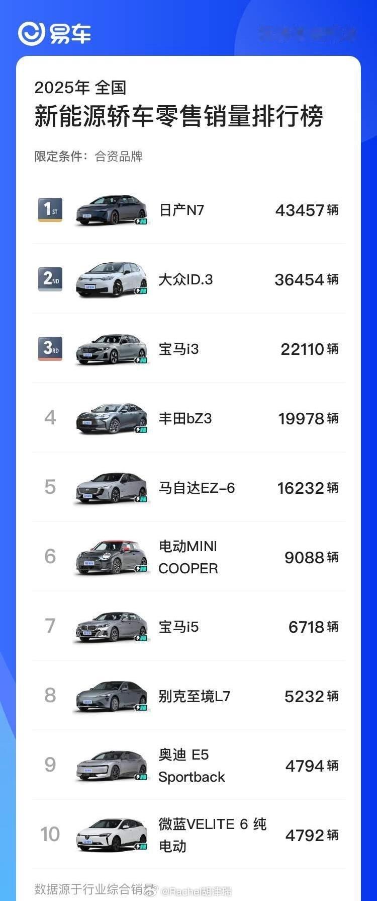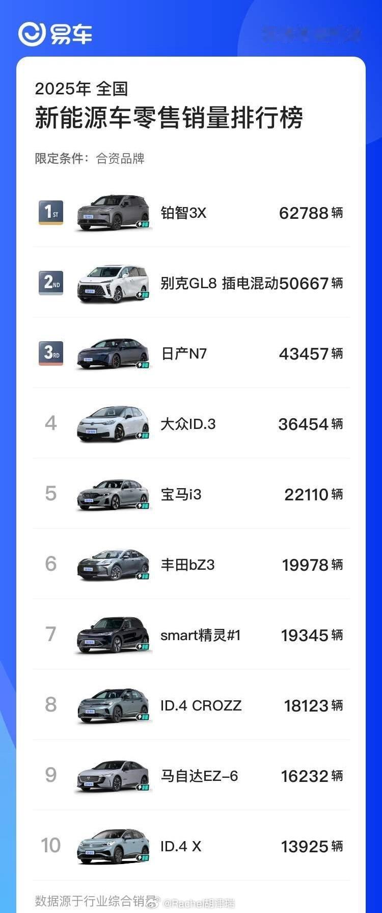【1-11月新能源合资品牌车型销量盘点】