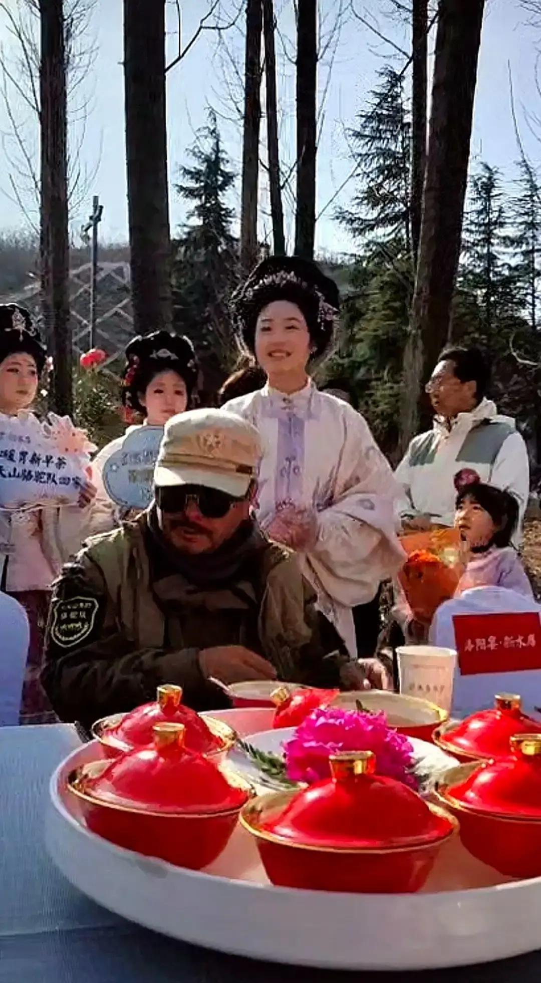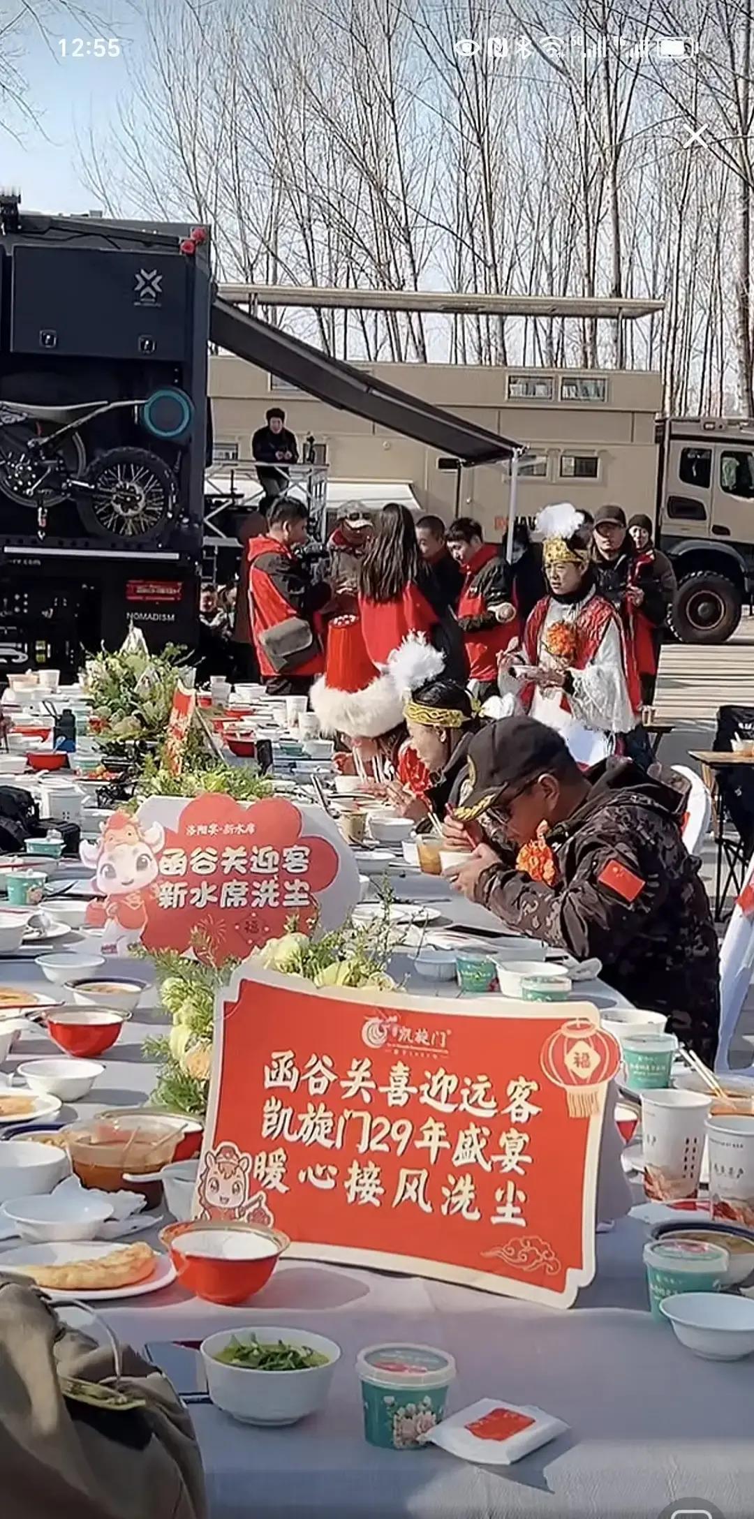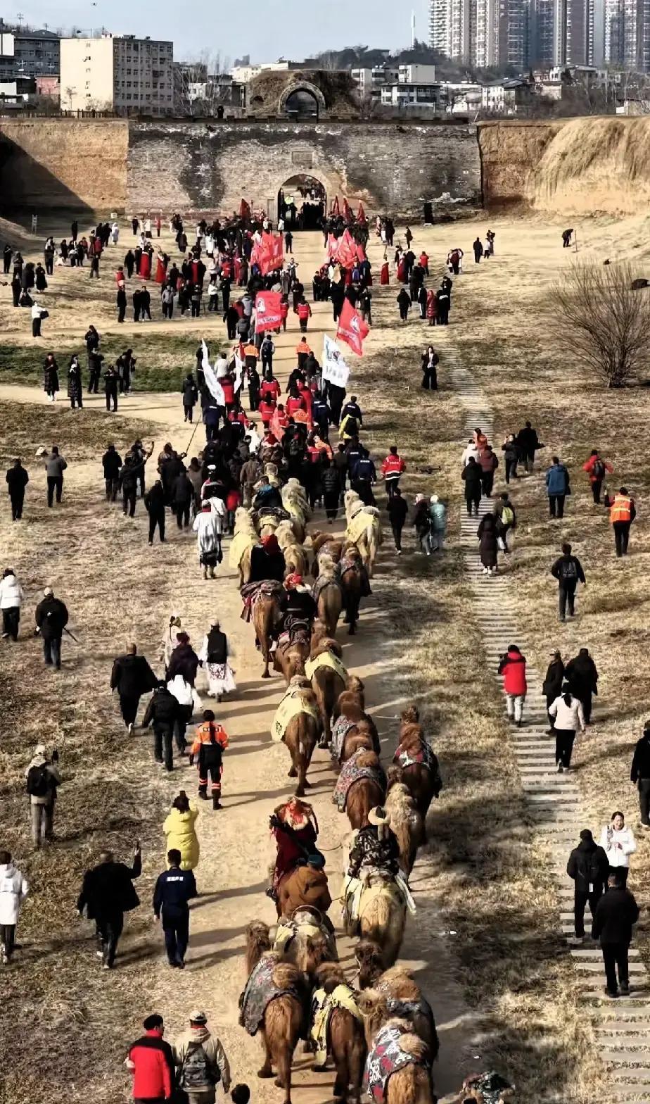 这画面看得人心里直冒热气,真有一种梦回千年的错觉 1月5号这天,东天山那支骆驼队终于晃晃悠悠进了洛阳新安的汉函谷关,这场面可比那些古装剧里的摆拍真实多了。当地老乡也是实诚,直接在露天就把著名的“洛阳流水席”给支棱起来了 你别嫌天冷,看着那一碗碗冒着白烟的热菜端上来,大伙儿围着桌子一坐,那股子亲热劲儿谁看谁迷糊。不仅是驼队的蒋队长被围得水泄不通,连那些骆驼看着都像是在自家后院散步一样自在 说实话,现在的景区搞活动,能把“仪式感”做成“人情味”的不多。看着这帮身穿民族服饰的队员和咱河南老乡在那载歌载舞,又是合影又是拉家常,这哪里是表演,分明就是远房亲戚串门来了 当年的丝绸之路上,想必也是这般光景:长途跋涉的商队一入关,迎接他们的就是一口热汤、一张笑脸 这碗跨越千里的流水席,吃的不仅是味道,更是咱中国人骨子里那股好客的热乎劲儿