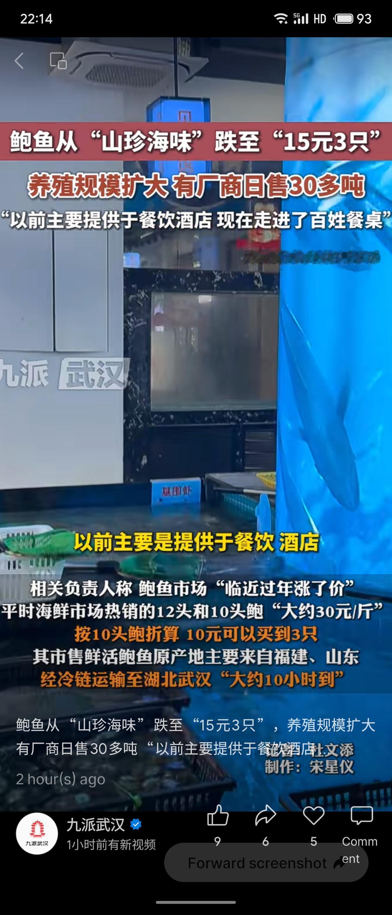 鲍鱼价格已从昔日的“山珍海味”跌至“15元3只”。随着养殖规模大幅扩大,有厂商日销售量可达30多吨,使其从主要供应餐饮酒店走向寻常百姓餐桌。平时市场热销的10头鲍约30元一斤,经冷链运输约10小时即可从福建、山东产地送达武汉等地。
